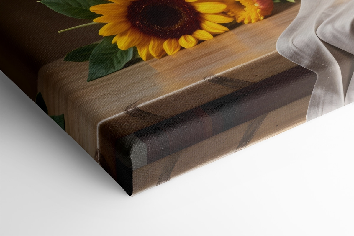 Fleur elke ruimte op met deze prachtige canvasprint met een vaas vol bloemen! Stel je voor dat je een pittig tuintje in je woonkamer hebt – water geven is niet nodig. De vrolijke zonnebloemen en delicate pioenrozen lijken naar je te knipogen en brengen een vleugje vreugde en warmte in je dag. Het is perfect voor die momenten waarop een beetje kleur een saaie middag in een kunstwerk kan veranderen. Stel je voor dat je een gezellig samenzijn organiseert en dat je gasten je unieke decor alleen maar kunnen complimenteren. Dit canvas is niet zomaar een afdruk; het is een sfeer die zegt: “Het leven is te kort voor saaie muren”. Voeg een vleugje florale charme toe en laat de goede tijden bloeien!