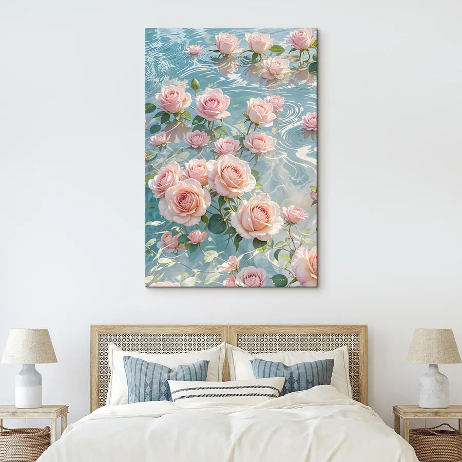 Fleur elke ruimte op met deze prachtige canvasprints met roze bloemen die sereen in het water drijven. Het is alsof je een stukje natuur in huis haalt. Stel je voor dat je langs dit werk loopt en je voelt een gevoel van rust over je heen komen, alsof je door een rustige tuin wandelt. De zachte tinten van de bloesems steken af tegen de zachte rimpelingen en creëren een levendige maar rustgevende sfeer. Perfect voor een woonkamer, slaapkamer of elk ander hoekje dat een vleugje schoonheid nodig heeft. Wie wil er nou niet zo’n elegantie aan de muur? Het is bloemenkunst met een dromerige twist, die uitnodigt tot glimlachen en zoete dagdromen.