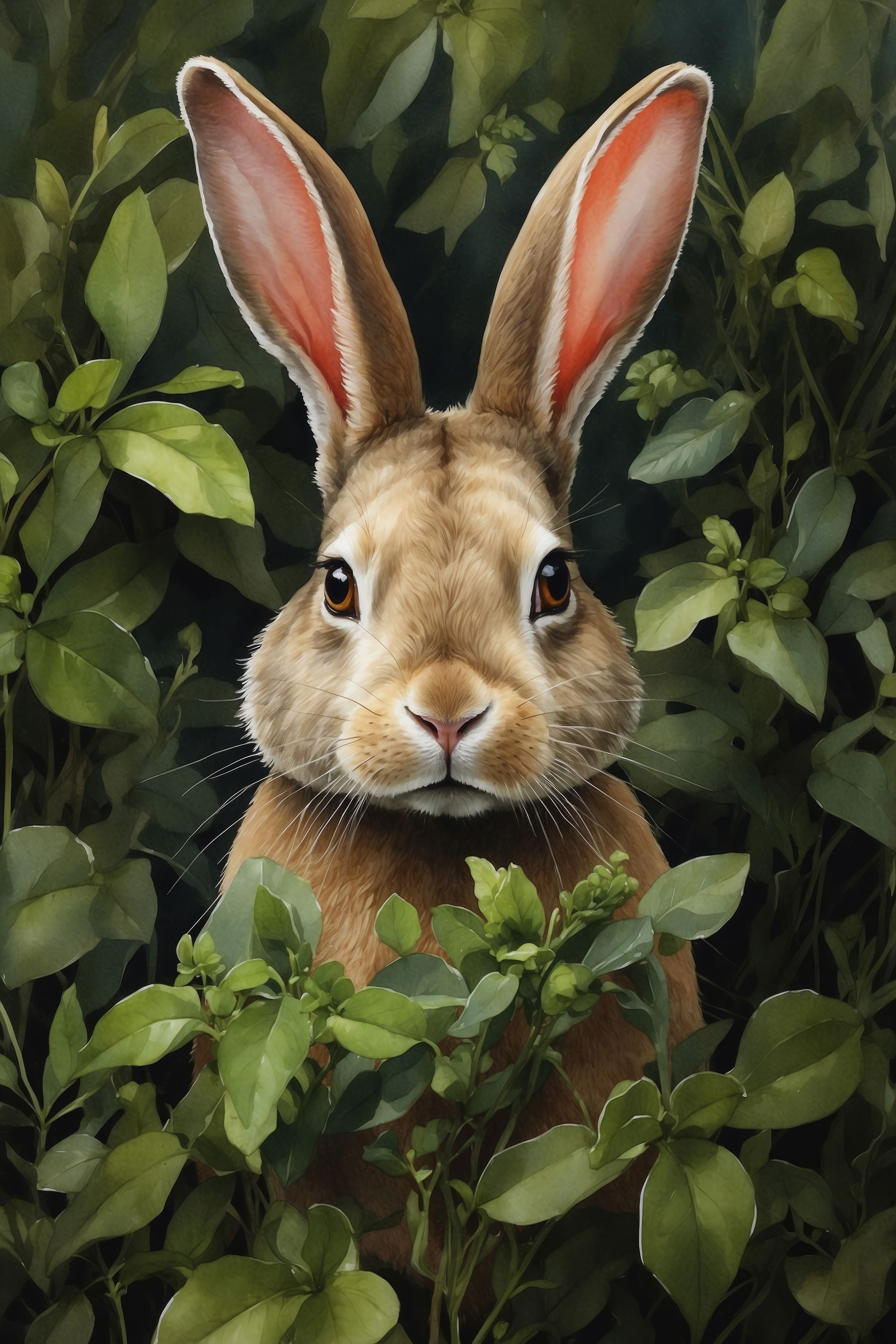 De levendige kleuren en levensechte details geven vreugde, waardoor hij perfect staat in een gezellige leeshoek of een levendige speelkamer. Bovendien herinnert het je eraan dat de magie van de natuur ook aan je muur past! Perfect voor dierenliefhebbers of iedereen die een vleugje eigenzinnigheid in hun inrichting nodig heeft. Je kunt het zachte geritsel van de bladeren bijna horen als dit konijntje je uitnodigt om in een serene, groene omgeving te stappen.