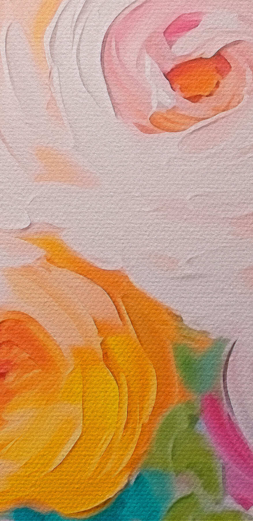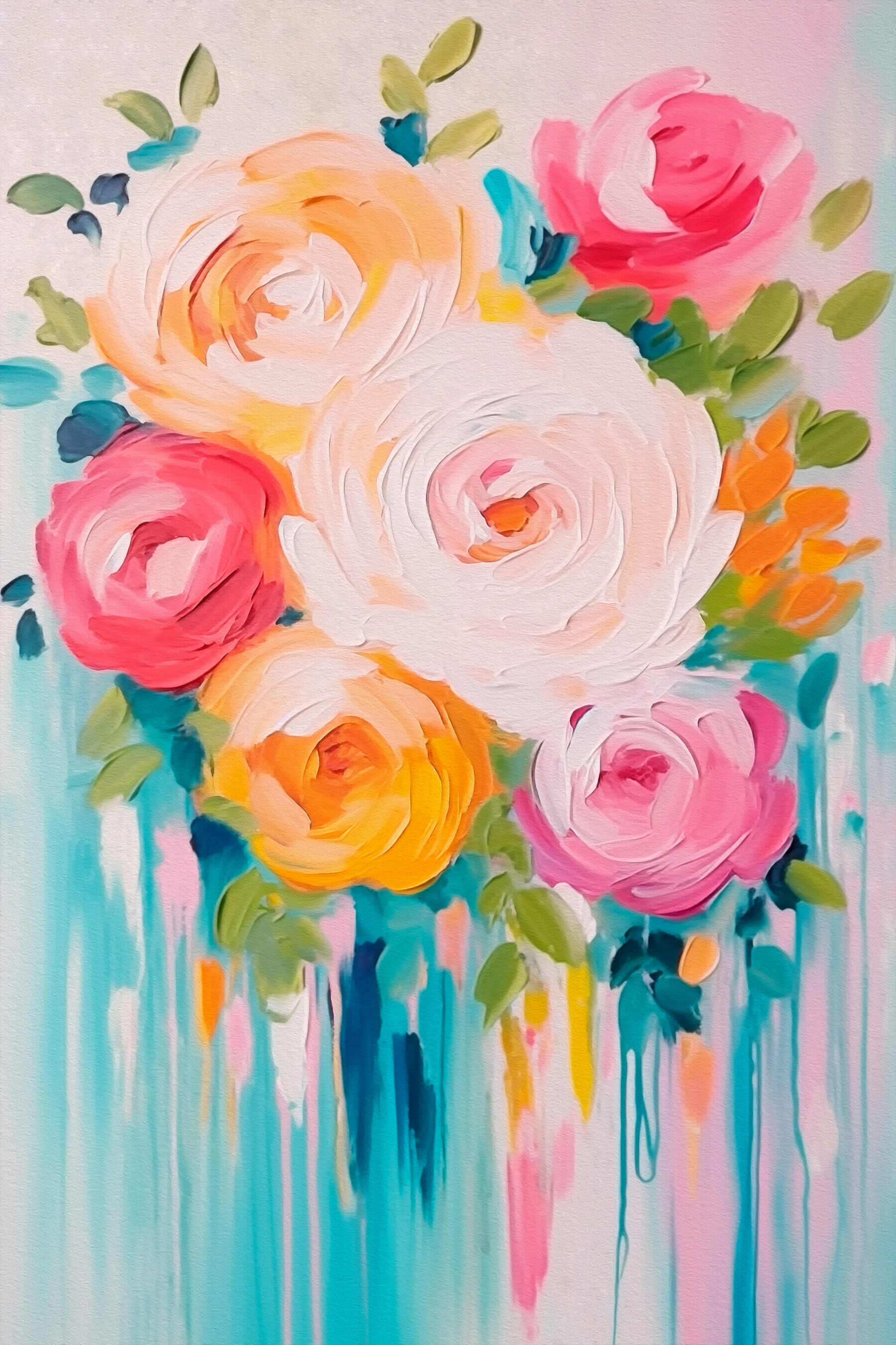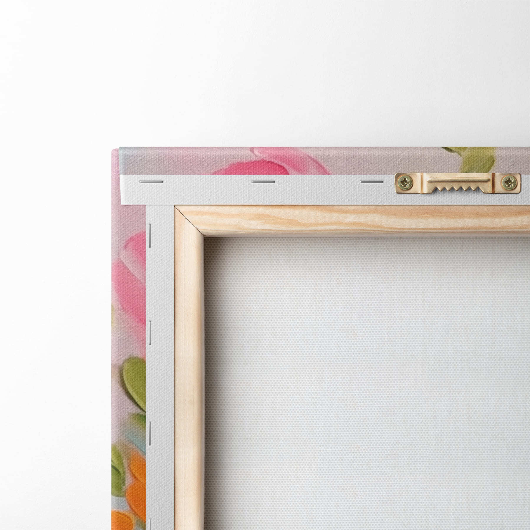 Deze heldere en vrolijke canvasprint van bloemen voegt een vleugje vreugde toe aan elke ruimte. Stel je voor dat je een kamer binnenloopt en begroet wordt door deze levendige bloemen – wie zou zich niet een beetje lichter voelen? De wervelingen van roze en geel roepen zonnige dagen op, misschien zelfs een wandeling in de tuin op een luie middag. Het is alsof je een vleugje natuur in huis haalt zonder de vervelende allergieën. Perfect voor een gezellig hoekje of zelfs een levendige eethoek, dit kunstwerk nodigt uit tot warmte en glimlachen. Serieus, het is moeilijk om niet te bewonderen hoe die kleuren samen dansen als een feest voor de ogen!