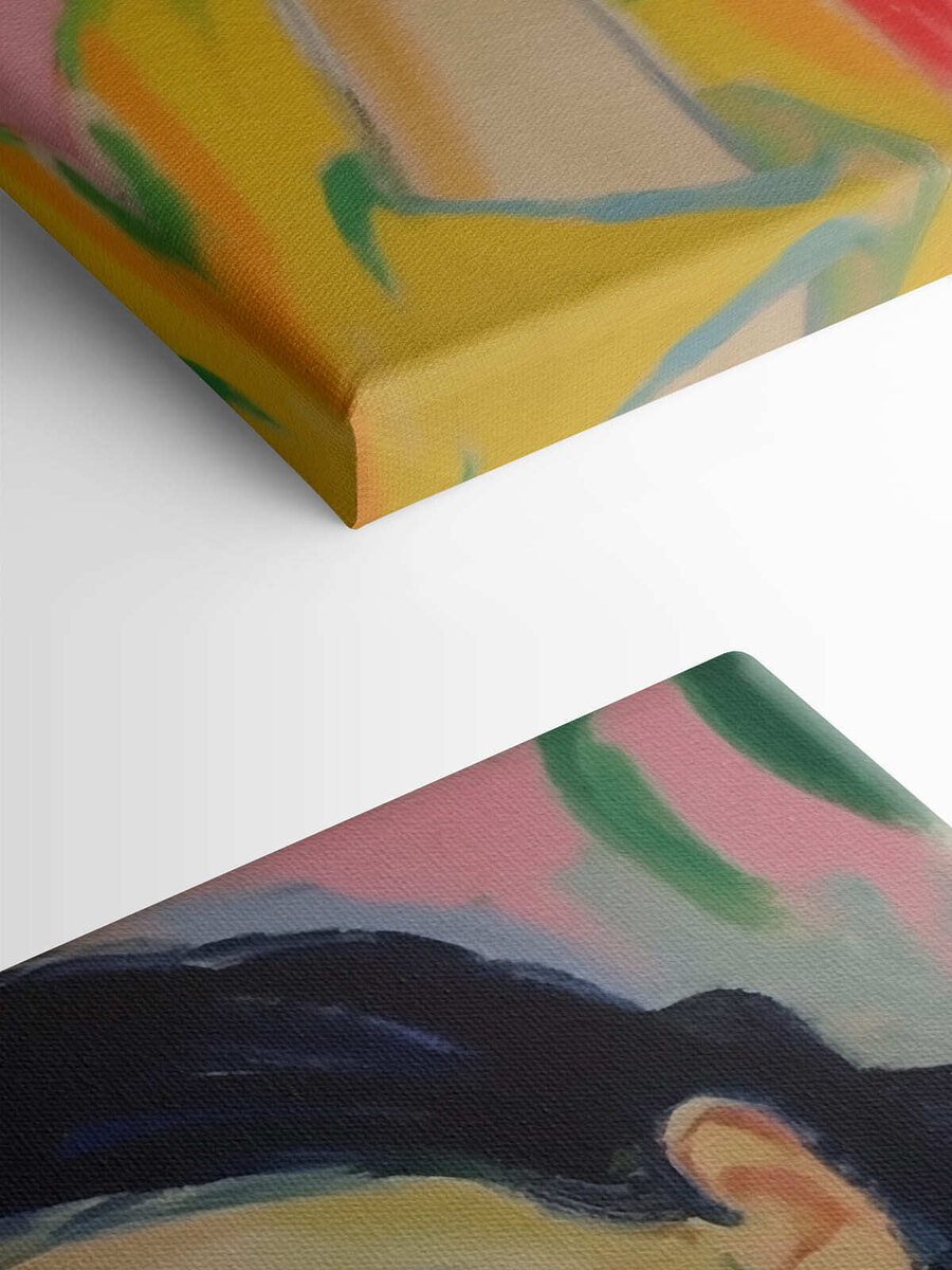 Duik in de dromerige wereld van de kunst met deze canvasprint met een serene vrouw verloren in slaap. De levendige kleuren zijn als een warme knuffel voor elke muur en fleuren een kamer direct op. Stel je voor dat je je kamer binnenloopt en begroet wordt door haar kalme uitdrukking – het is alsof ze je uitnodigt om even de tijd te nemen, diep adem te halen en gewoon te ontspannen.