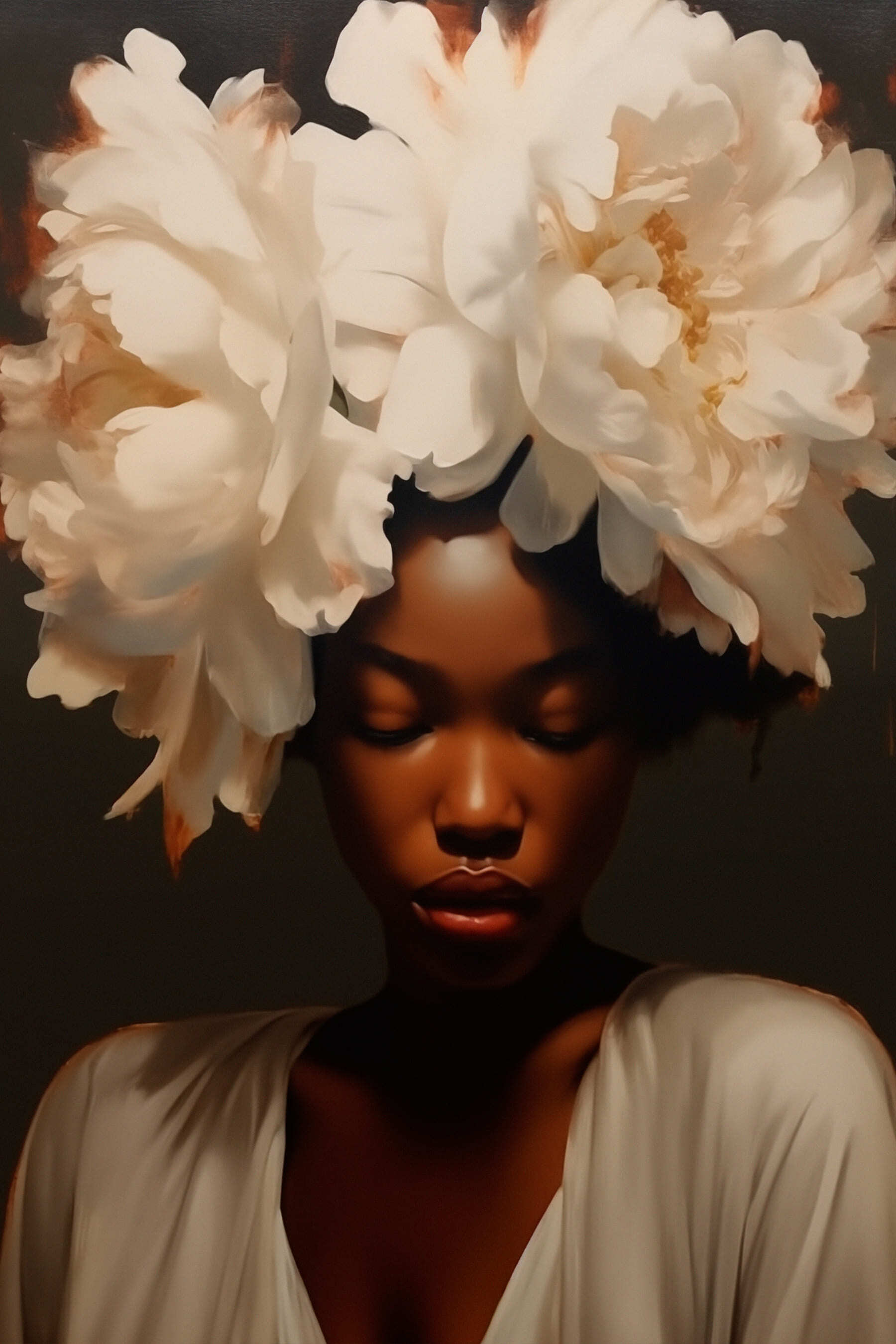 Transformeer je ruimte met deze prachtige canvasprint, “Woman with Flowers on Her Head”. Het is niet zomaar kunst; het is een vibe. Stel je voor dat je je woonkamer binnenloopt en begroet wordt door deze schoonheid, die rust en gratie uitstraalt. De delicate bloemen lijken bijna geheimen van de lente en vernieuwing te fluisteren, terwijl haar serene uitdrukking kalmte uitstraalt. Perfect voor die lege muur waar je al tijden naar kijkt. Vrienden zullen stoppen, staren en misschien vragen waar je zo’n uniek stuk hebt gevonden… en je bescheiden opschepperij! Dit kunstwerk kan elke ruimte levendiger maken – wie heeft er een tuin nodig als je dit hebt?