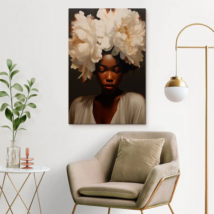 Transformeer je ruimte met deze prachtige canvasprint, “Woman with Flowers on Her Head”. Het is niet zomaar kunst; het is een vibe. Stel je voor dat je je woonkamer binnenloopt en begroet wordt door deze schoonheid, die rust en gratie uitstraalt. De delicate bloemen lijken bijna geheimen van de lente en vernieuwing te fluisteren, terwijl haar serene uitdrukking kalmte uitstraalt. Perfect voor die lege muur waar je al tijden naar kijkt. Vrienden zullen stoppen, staren en misschien vragen waar je zo’n uniek stuk hebt gevonden… en je bescheiden opschepperij! Dit kunstwerk kan elke ruimte levendiger maken – wie heeft er een tuin nodig als je dit hebt?