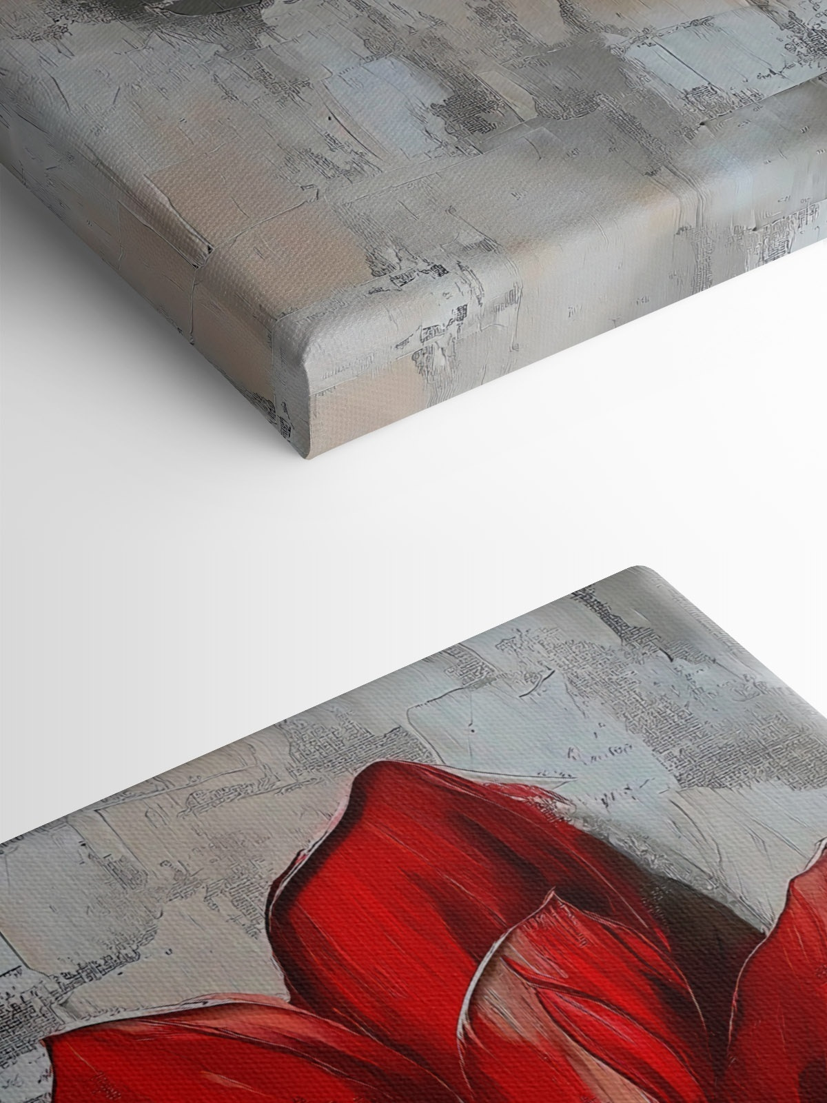 Fleur elke ruimte op met deze prachtige canvasprint met een opvallende rode bloem tegen een zachtgrijze achtergrond. Het is alsof je een stukje natuur aan je muur hebt hangen, zonder de gieter! De levendige bloemblaadjes lijken te dansen van energie en brengen een frisse sfeer die een kamer direct kan opfleuren. Stel je voor dat je ‘s ochtends aan je koffie nipt terwijl deze schoonheid je begroet – het is een serieuze stemmingsbooster. Perfect voor woonkamers of gezellige leeshoekjes. Gasten zullen je vragen waar je het gevonden hebt. Wie wist dat kunst zo levendig en toch rustgevend kon zijn? Breng een vleugje kleur en laat je muren bloeien!