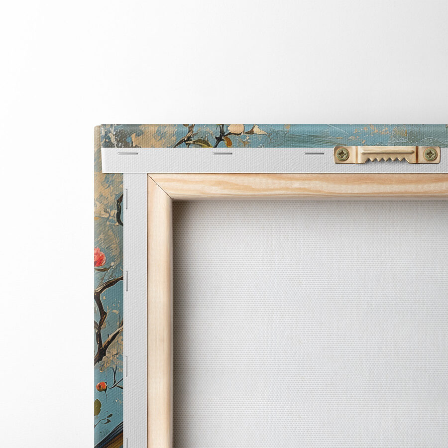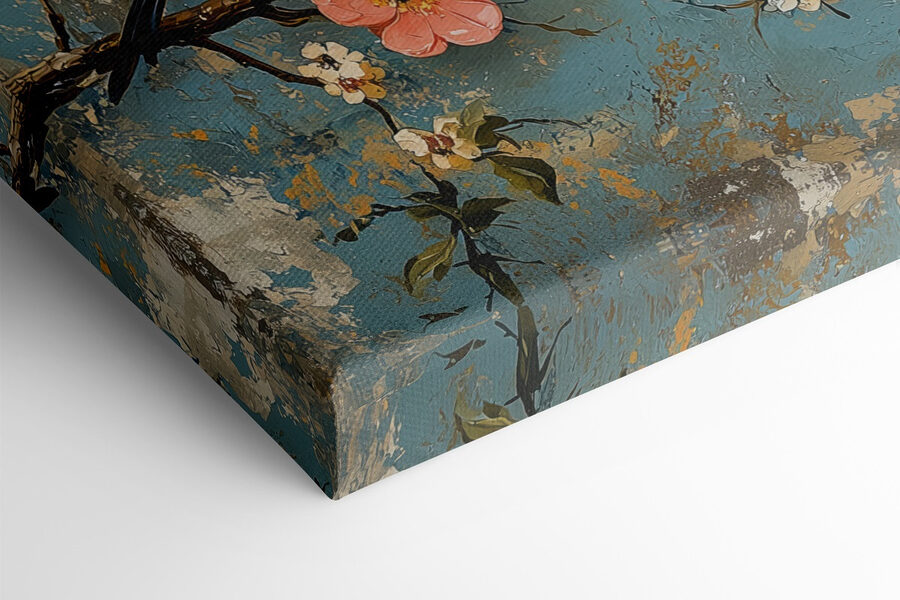 Stel je een gezellig hoekje in je huis voor, waar een heerlijk vleugje kleur het buitenleven naar binnen brengt. Deze canvasprint, met een vrolijke groep vogels op een tak met bloeiende bloemen, doet precies dat. Het is als een charmant praatje tussen gevederde vrienden, elk met zijn eigen persoonlijkheid. De zachte tinten en rijke texturen creëren een warme sfeer die uitnodigt tot glimlachen en dagdromen. Of het nu in een woonkamer of een zonnig hoekje hangt, het zal zeker opvallen en gesprekken op gang brengen. Perfect om een extra vleugje natuur aan te brengen. Je zult elke keer glimlachen als je langsloopt – het is alsof je het hele jaar door een stukje lente hebt!
