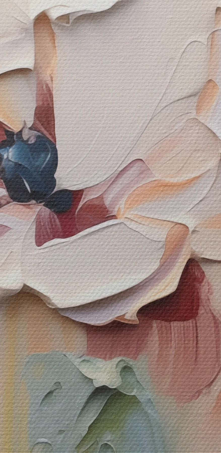 Dit werk hangt niet alleen aan de muur, maar nodigt uit tot bewondering en een gesprekje over kunst. Perfect voor een gezellig hoekje of zelfs om een kantoor op te fleuren. En hé, geen onderhoud nodig – geen water geven, geen verwelking! Gewoon pure schoonheid die het leven een beetje mooier maakt. Perfect voor bloemenliefhebbers of iedereen die een vleugje natuur in huis wil halen.