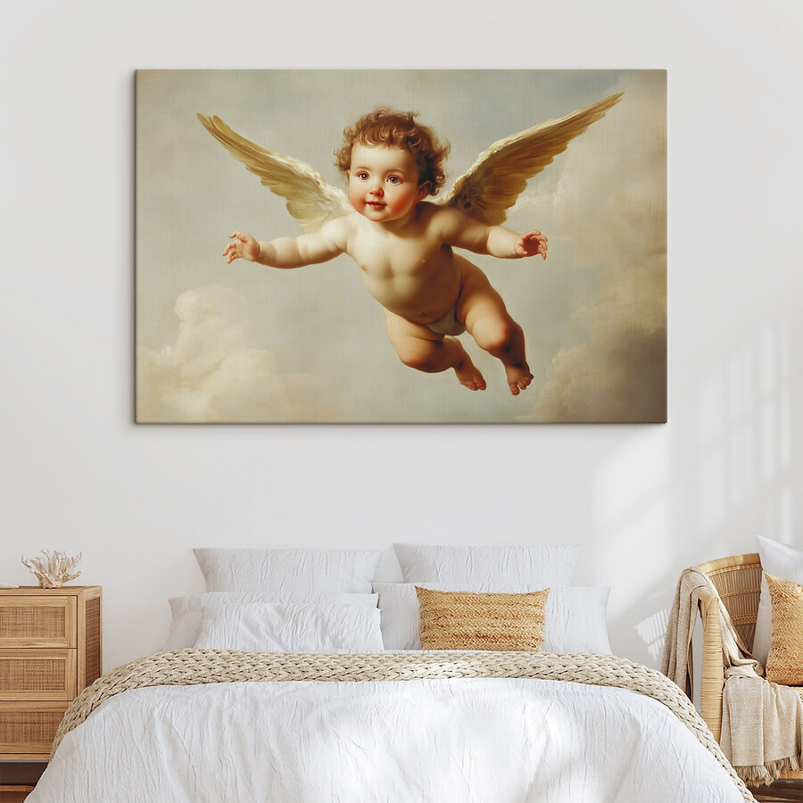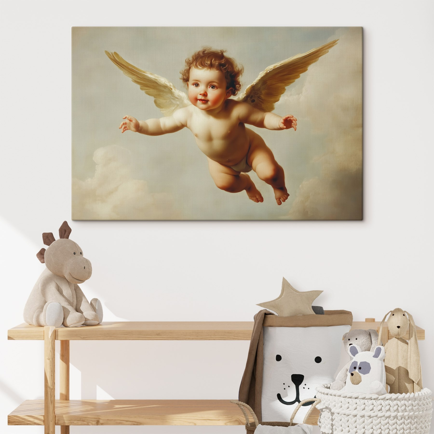 Maak kennis met “Canvas Schilderijen Baby in the Sky”, een prachtig stuk dat een vleugje magie toevoegt aan elke kamer. Stel je dit voor: een lieve baby, met vleugels klaar om te zweven, zwevend tussen de wolken alsof het gewoon een dinsdag is. Als je het aan de muur hangt, is het niet alleen maar decor; het is een hartverwarmende gespreksstarter en een zachte herinnering aan onschuld. Het roept gevoelens van nostalgie op en doet je misschien denken aan kinderdromen of dat ene serene moment waarop je de wolken voorbij ziet drijven. Perfect voor kinderkamers of elke andere ruimte die een vleugje eigenzinnigheid nodig heeft. Wie zou zich niet lichter voelen als hij hiernaar kijkt? Het is alsof je een beschermengel hebt die ook nog eens kunst is – wat een winst!