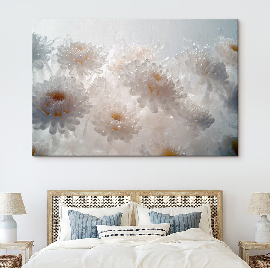 Fleur elke kamer op met deze prachtige canvasprint met een charmante groep witte bloemen. Stel je voor dat je je woonkamer binnenloopt en daar hangt een zachte uitbarsting van natuurlijke schoonheid aan je muur. Deze bloemen lijken te fluisteren, “Haal adem, alles is goed!”. Perfect voor een knusse leeshoek of een serene slaapkamer, ze nodigen uit tot een gevoel van vrede dat gewoon goed voelt. Bovendien hoeven ze geen water te krijgen, wat altijd mooi meegenomen is! Het is net alsof je je eigen tuin hebt, zonder de vervelende bijen. Kleed je muren aan en laat deze bloemen een glimlach op je gezicht toveren!