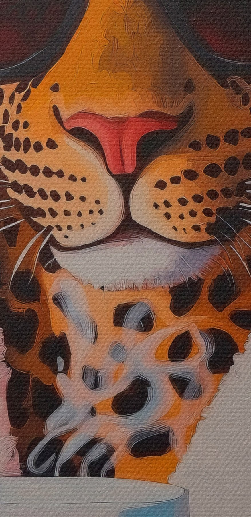Stel je een luipaard voor – ja, een luipaard – die uit een dampende beker nipt terwijl hij een zonnebril en een knusse badjas draagt. Deze canvasprint is niet zomaar kunst; het is een vibe, man. De felroze achtergrond voegt een vleugje persoonlijkheid toe aan elke ruimte, waardoor het onmogelijk is om niet te glimlachen als je er een glimp van opvangt. Het is alsof je een eigenzinnige vriend hebt die een gevoel van plezier in de kamer brengt. Perfect voor een lounge, kantoor of zelfs een ontspannen café, dit stuk stimuleert conversatie en gelach. Wie wist dat een luipaard zo chic kon zijn? Voeg een vleugje eigenzinnigheid toe aan je inrichting en laat je muren het woord doen!