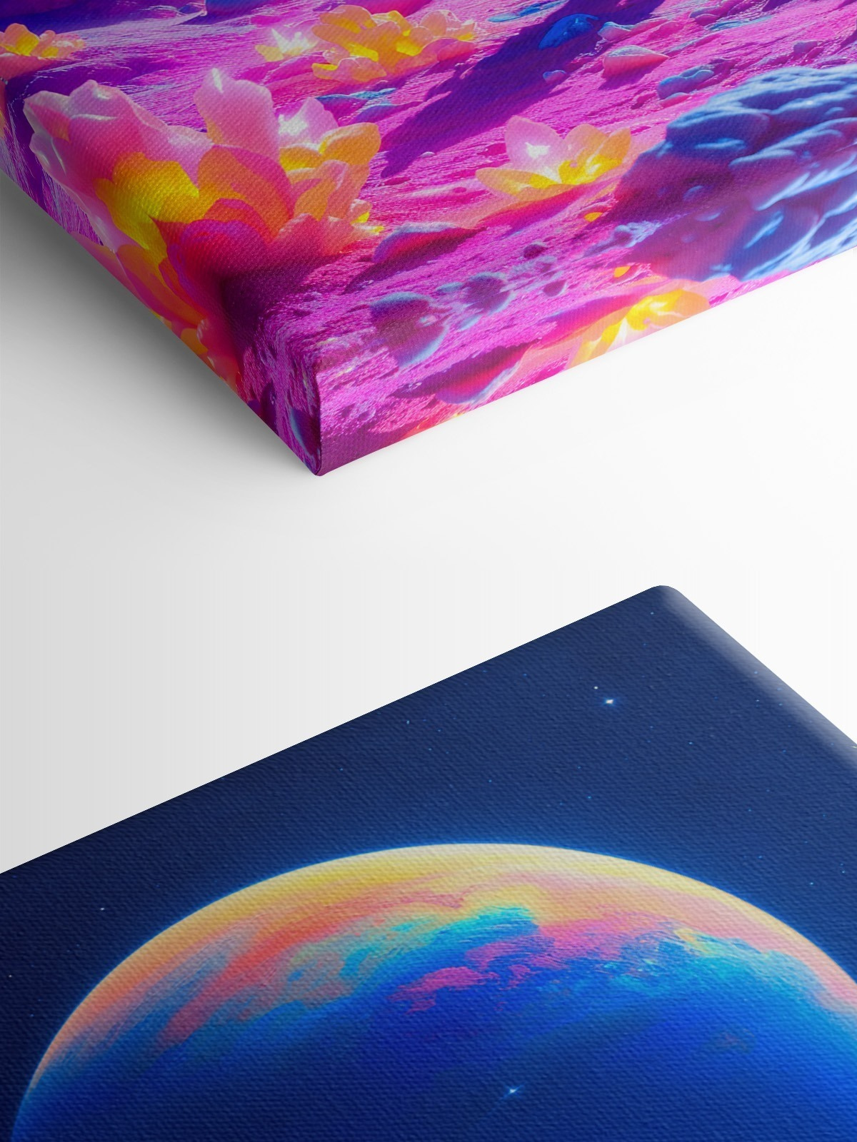 Stap in een wereld waar avontuur en droomlandschap elkaar ontmoeten! Deze levendige canvasprint van een astronaut die door een kleurrijke woestijn wandelt is als een ticket voor een kosmische reis in je woonkamer. Die gloeiende bloemen en verre planeten? Een lust voor het oog! Stel je de gesprekken voor die zullen losbarsten – gasten die wijzen en nadenken over de geheimen die deze ruimteverkenner zoekt. Of het nu een gezellig leeshoekje is of een stoer middelpunt in je kantoor, dit stuk maakt een statement. Het is niet zomaar kunst; het is een uitnodiging om groots te dromen en vrij rond te dwalen, met een vleugje speelsheid.