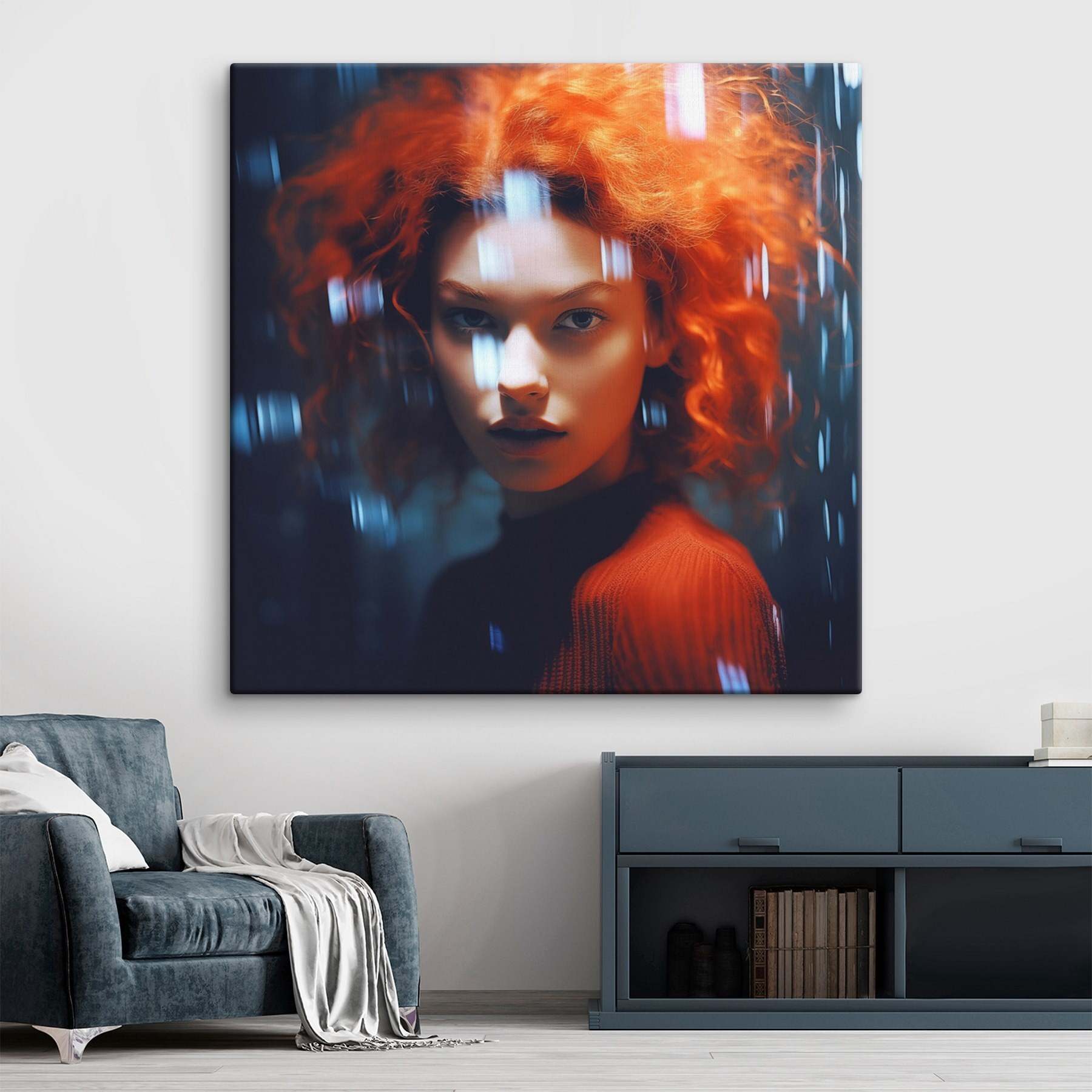 Deze canvasprint legt een moment vast waarop schoonheid het onverwachte ontmoet. Stel je een opvallende vrouw voor met vurig rood haar, die als een baken staat terwijl zachte regendruppels om haar heen dansen. Het is alsof ze gevangen zit tussen twee werelden – de warmte van haar levendige lokken en de koele, verfrissende regen. Stel je voor dat je dit in je kamer ophangt; het zal zeker aanzetten tot gesprekken en misschien zelfs tot dagdromen. Het is alsof je een beetje mysterie en een heleboel persoonlijkheid in huis haalt. Perfect voor een knus hoekje of een levendige woonkamer, het voegt een vleugje emotie en intrige toe aan het dagelijks leven. Wie zou dat niet willen?