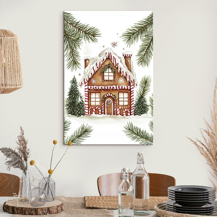 Geef je muur een vleugje eigenzinnigheid met deze charmante “Gingerbread House with Snow” canvasprint. Het is net een gezellig winters sprookje, compleet met ijzige sneeuw en zuurstokken die wachten op een feestelijke bijeenkomst. Stel je voor dat je achterover leunt met een kop chocolademelk, de zoete, kruidige geur die in de lucht hangt, terwijl dit verrukkelijke tafereel je doet glimlachen en warme herinneringen oproept. Dit kunstwerk fleurt niet alleen de ruimte op, maar voegt ook een vleugje feestelijke nostalgie toe – perfect voor iedereen die vindt dat elk huis een beetje magie verdient, vooral tijdens de feestdagen. En wie wil er nu geen peperkoekhuis dat nooit wordt opgegeten?