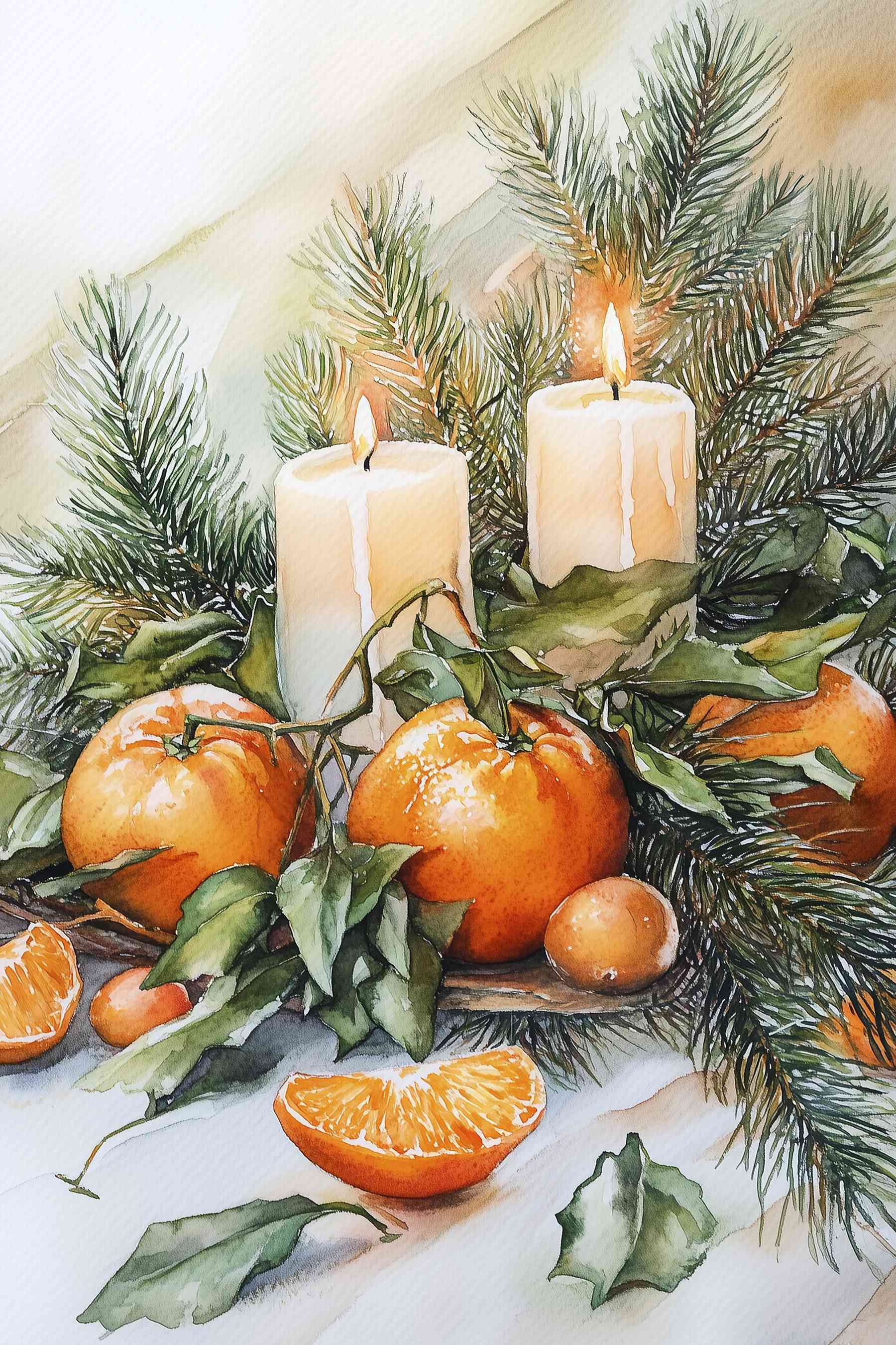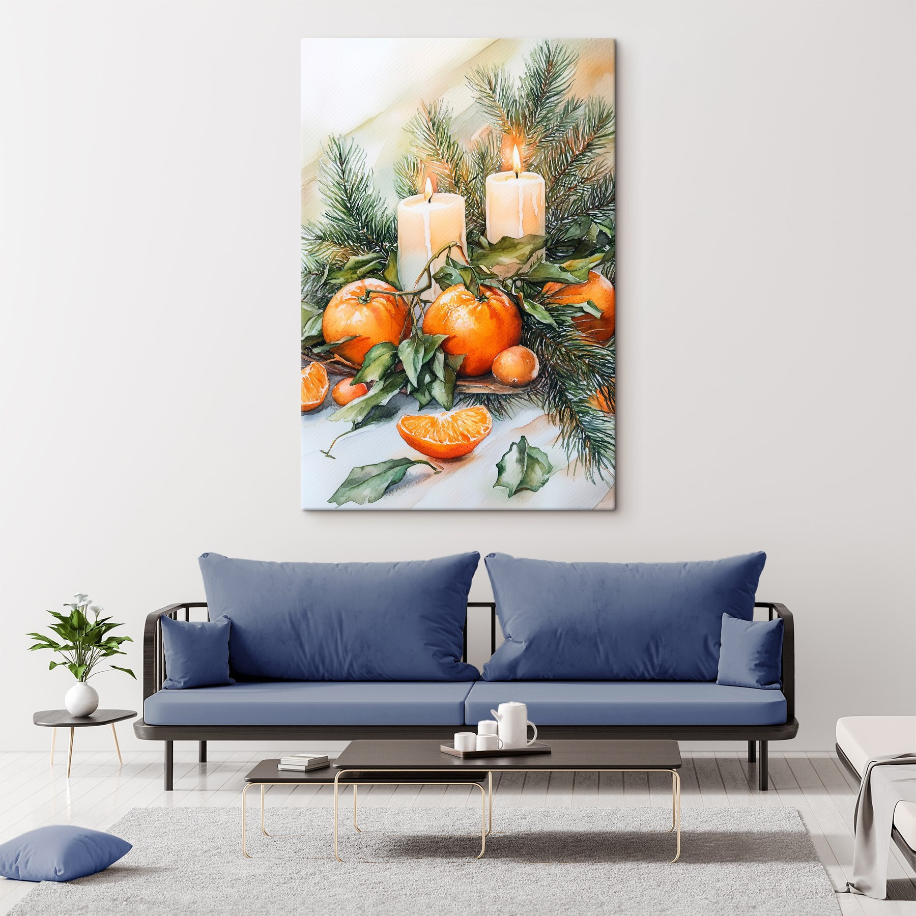 Fleur je kamer op met deze charmante aquarel canvasprint van sinaasappels en kaarsen op een tafel. Het is net een zonnige brunch in een gezellig café, op je muur! Stel je de warme gloed van de kaarsen voor die je uitnodigt om te ontspannen, misschien met een kopje thee in de hand. De sappige, levendige sinaasappels knallen niet alleen, maar fluisteren ook zoete zomerse sferen, zelfs in de somberheid van de winter. Dit kunstwerk is perfect voor keukens of eethoeken en voegt een vleugje vreugde en een vleugje natuur toe aan je interieur. En wie kan de allure van fruit en flikkerende lichtjes weerstaan? Het is verfrissend uniek, net als jouw stijl!