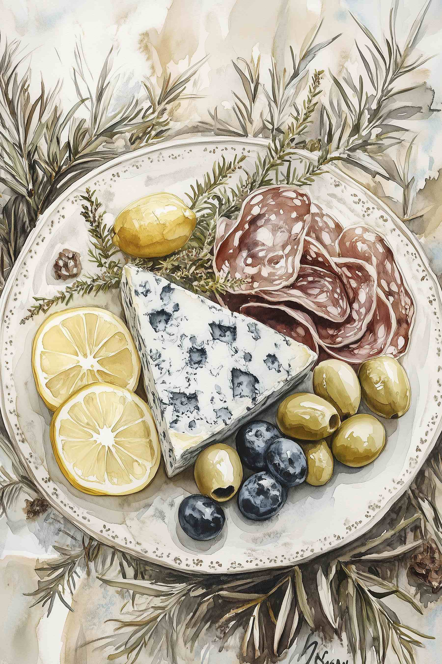 Breng een vleugje elegantie in elke kamer met deze prachtige canvasprint, “Bord met eten, kaas en olijven”. Stel je voor dat het boven je eettafel hangt, gesprekken aanwakkert en elke maaltijd een beetje chiquer maakt. Door de zachte kleuren en ingewikkelde details van die decadente kaas, glinsterende olijven en pittige citroenen hoor je bijna het gerinkel van wijnglazen. Het is net een stukje van een charmante mediterrane bistro, zonder de vliegtickets. Perfect voor fijnproevers of iedereen die een vleugje persoonlijkheid aan zijn of haar ruimte wil toevoegen. En het past ook nog eens heel goed bij een kaasplankje. Hoe vind je dat als inspiratie?