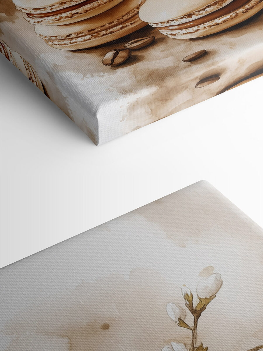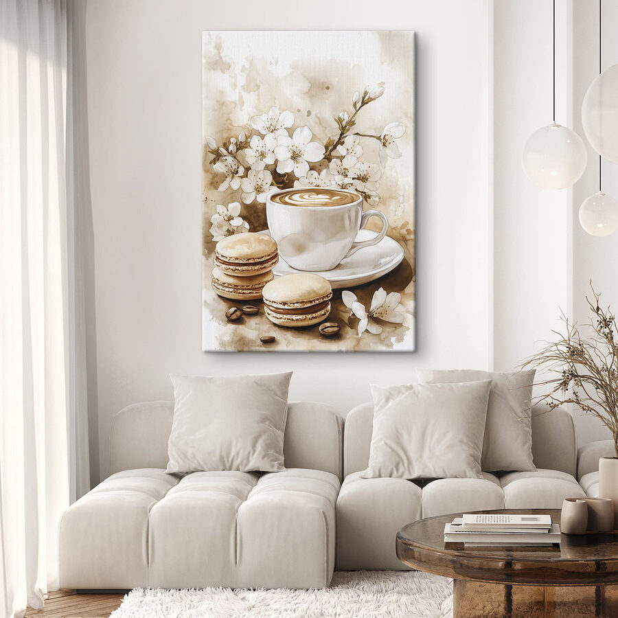 Transformeer je ruimte met de “Cup of Coffee and Macaroons” canvas print. Het is alsof je een gezellige café sfeer in huis haalt. Stel je voor dat je lekker wegkruipt met een goed boek terwijl de zachte koffietinten en delicate bloemen om je heen dansen. Die charmante bitterkoekjes? Ze zijn niet alleen een lust voor het oog! Dit kunstwerk fluistert warmte en nodigt uit tot gedeelde momenten. Het is perfect voor een keuken of een leeshoek en zorgt voor een heerlijke mix van comfort en stijl. En wie houdt er niet van een beetje zoetigheid in zijn inrichting? Het is een lust voor het oog en je humeur!