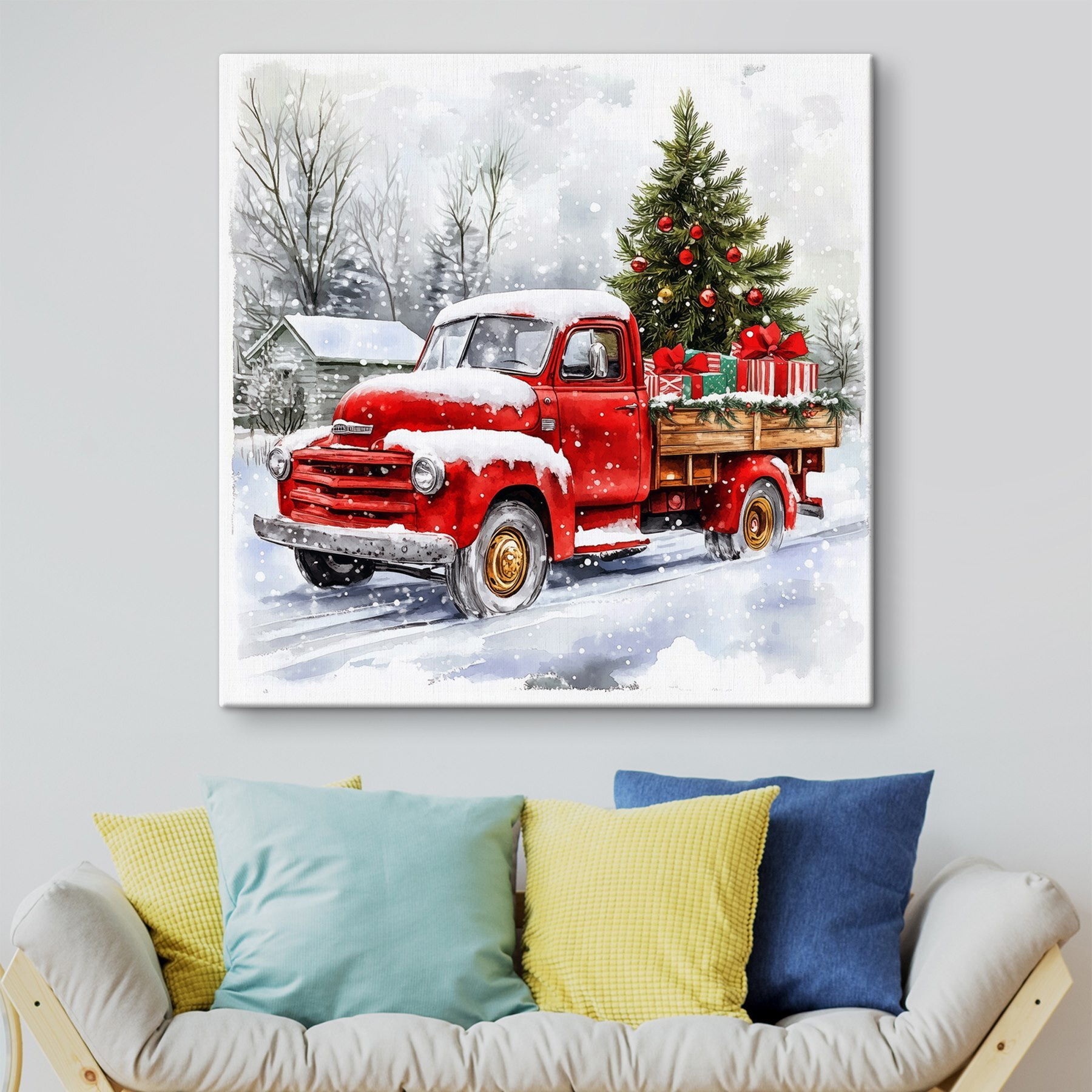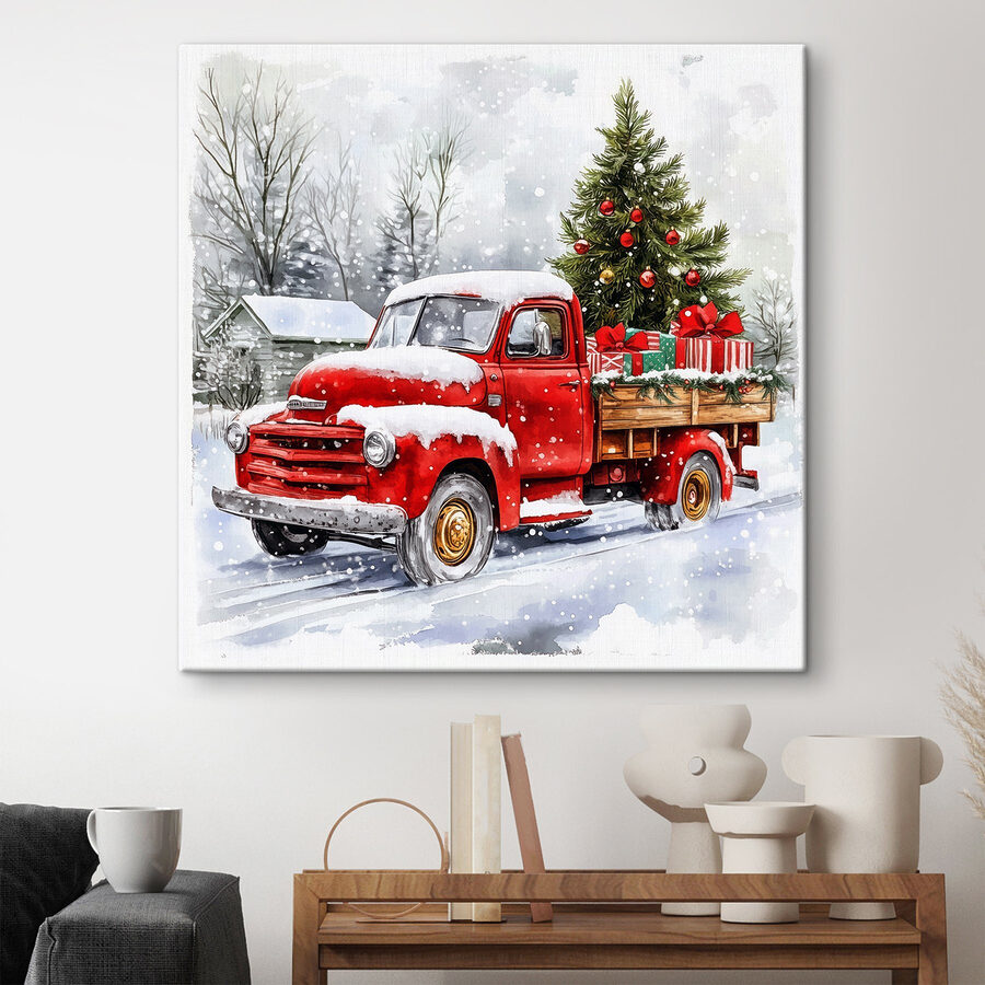 Stel je voor dat je lekker knus in je woonkamer zit met warme chocolademelk in je hand en deze charmante canvasprint brengt alle feestelijke vibes. “Canvas Schilderijen Red Truck with a Christmas Tree on the Back” vangt een klassieke scène die voelt als een warme knuffel op een besneeuwde dag. Stel je voor: een oude rode vrachtwagen, beladen met een sprankelende kerstboom en ingepakte cadeaus, doet je denken aan die gezellige winterherinneringen. Het is alsof de feestdagen samenkomen in één prachtig plaatje! Perfect om een vrolijke sfeer te creëren, het voegt een vleugje nostalgie toe aan elke ruimte. Of het nu een familiebijeenkomst is of gewoon een rustige avond, dit stuk zal zeker aanzetten tot glimlachen en verhalen. En laten we eerlijk zijn, wie houdt er niet van een vrachtwagen met een boom? Het is precies de juiste dosis feestvreugde die fluistert, “Laten we wat herinneringen maken”. Hang hem op en zie hoe het vakantiegevoel je overneemt!