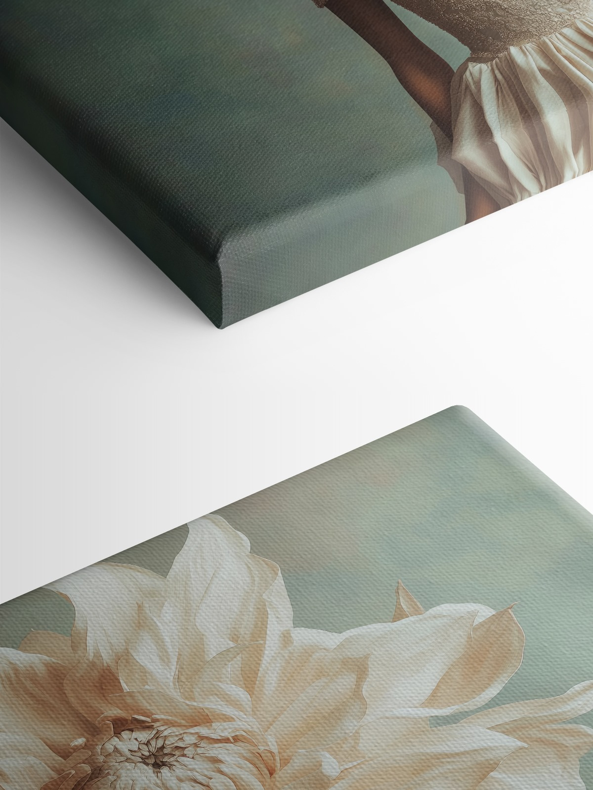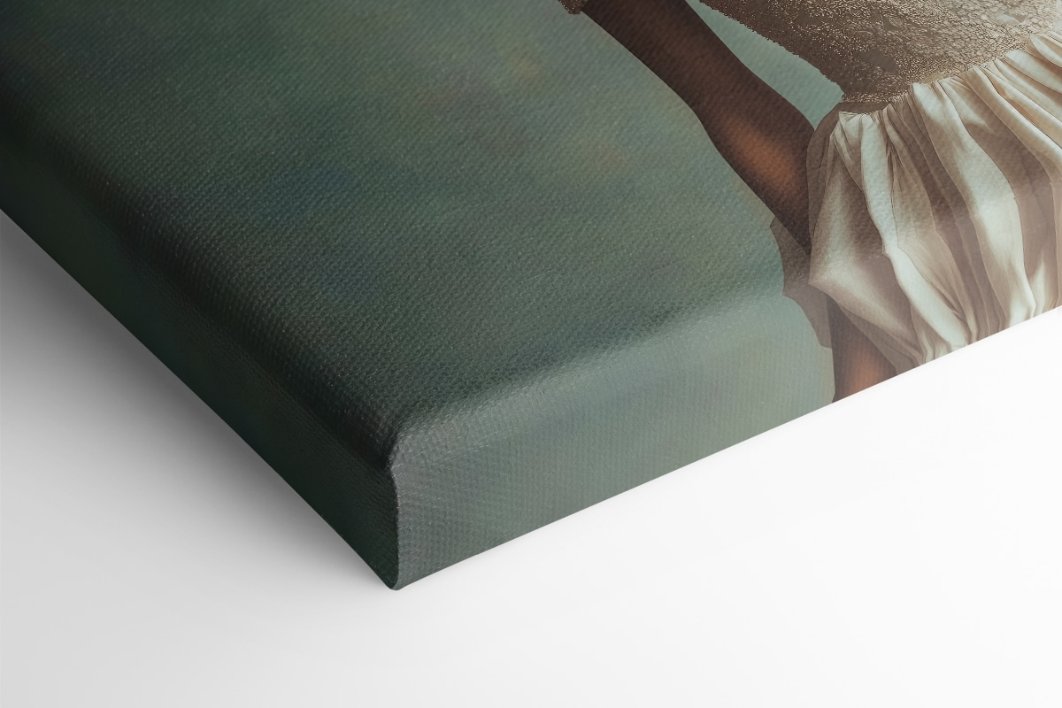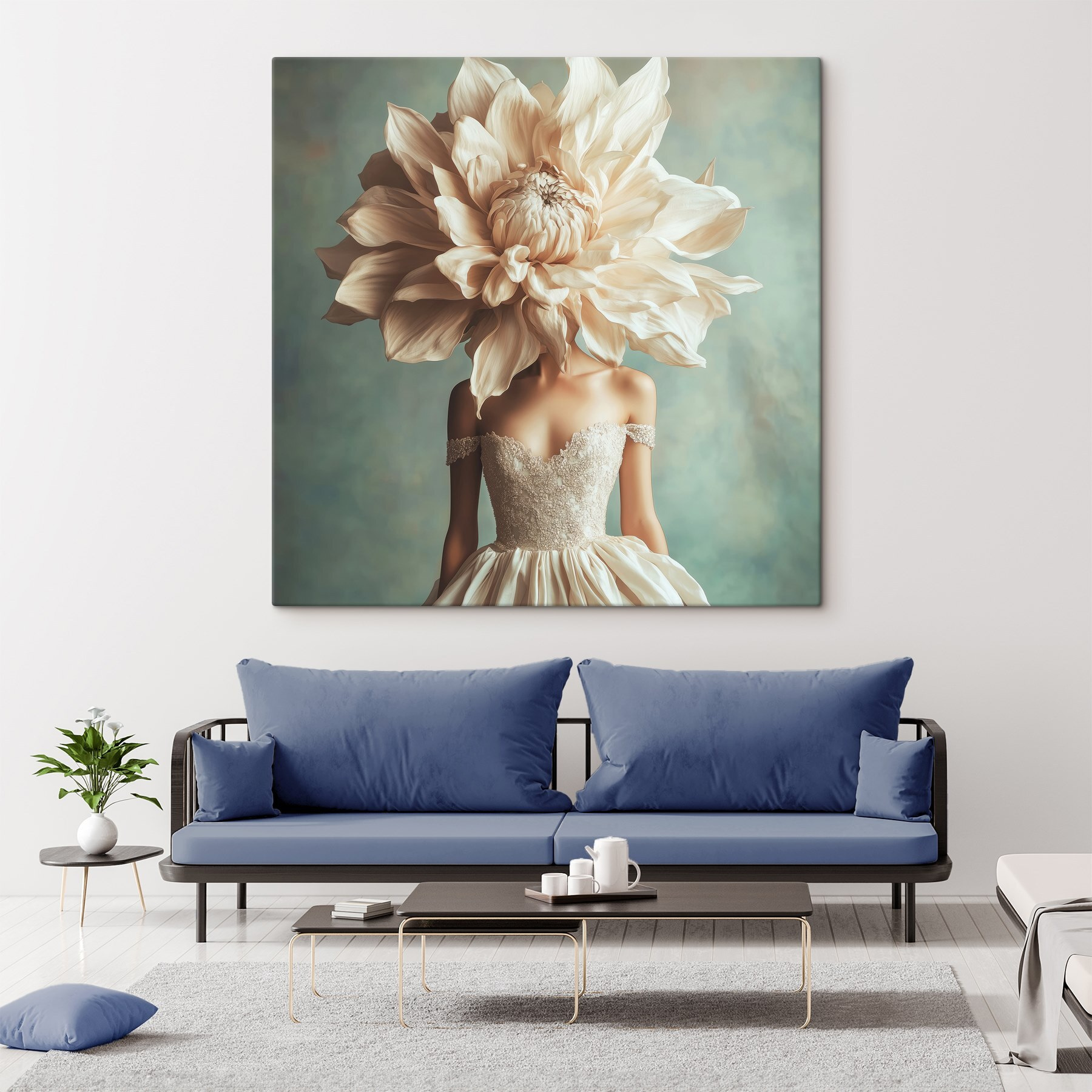 Stel je voor dat je een kamer binnenloopt en je oog valt op een prachtig doek. Het is als een frisse wind met een twist! Dit kunstwerk, met een sierlijke figuur in een dromerige jurk en een bloem die barst van leven in plaats van een hoofd, wekt nieuwsgierigheid op. Het voegt een vleugje eigenzinnigheid toe alsof het net uit een sprookje komt.