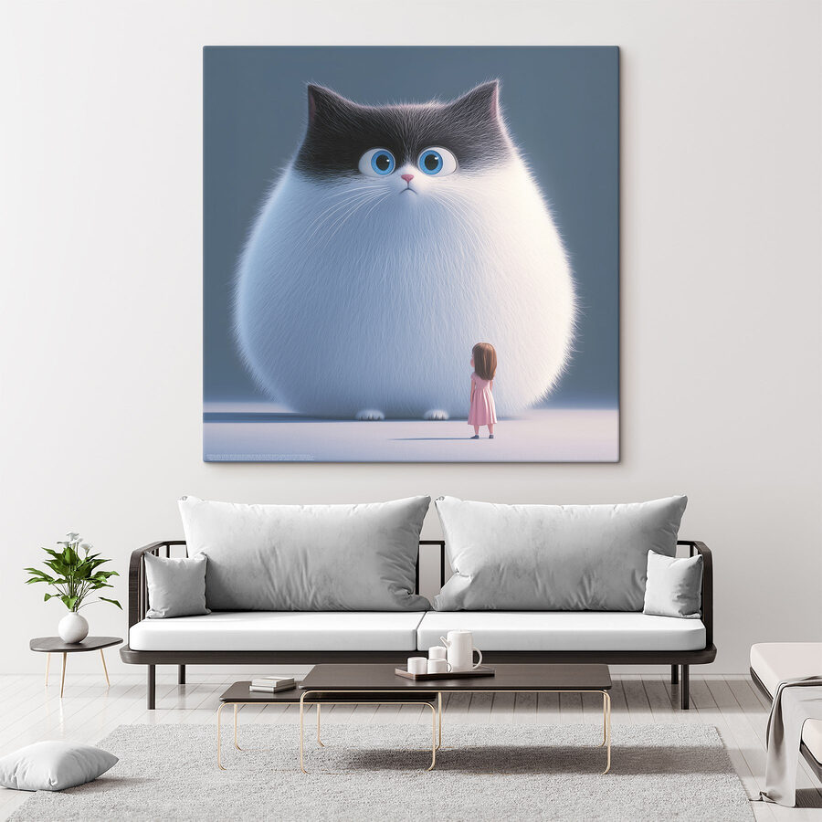 Stel je een speels tafereel voor waarin een klein meisje opkijkt naar een onmogelijk pluizige kat, met ogen zo groot als schoteltjes. Deze canvasprint is niet zomaar kunst; het is een stukje eigenzinnigheid dat een glimlach op ieders gezicht tovert. Het is alsof de kat geheimen te delen heeft, en dat kleine meisje wil het maar al te graag weten! Perfect voor een knus hoekje of een kinderkamer, het stimuleert de verbeelding en de lach. Bezoekers zullen misschien even stilstaan, grinniken en zeggen: “Is dat niet schattig?”. Het is een vriendelijke herinnering dat de grootste geneugten van het leven soms in de pluizigste pakketjes zitten.