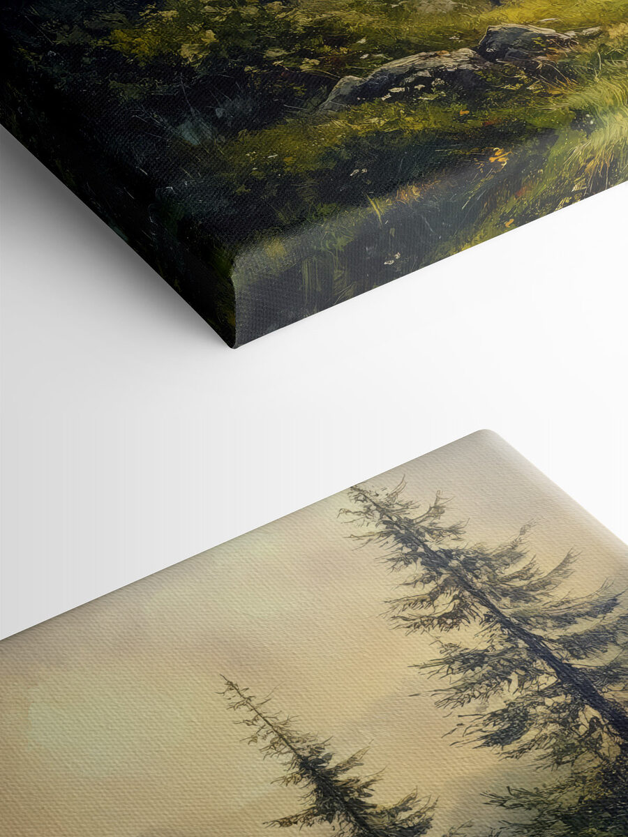 Stel je voor dat je een sereen bos binnenstapt met deze prachtige canvasprint. Het is alsof je wordt meegevoerd naar een vredig bergpad waar de bomen geheimen over de natuur fluisteren. De kleuren dansen met elkaar, van het weelderige groen tot de zachte, gedempte sfeer die hint naar de dageraad. Of je het nu ophangt in een gezellige woonkamer of een rustgevende slaapkamer, het brengt een stukje van het buitenleven naar binnen. Stel je een zonnige middag in de buurt voor, of misschien een rustige avond gewikkeld in een deken. Dit kunstwerk is niet alleen decor; het is een uitnodiging om adem te halen, te ontspannen en je gedachten te laten afdwalen naar een rustige ontsnapping. Perfect voor natuurliefhebbers of iedereen die behoefte heeft aan een vredige sfeer in huis.