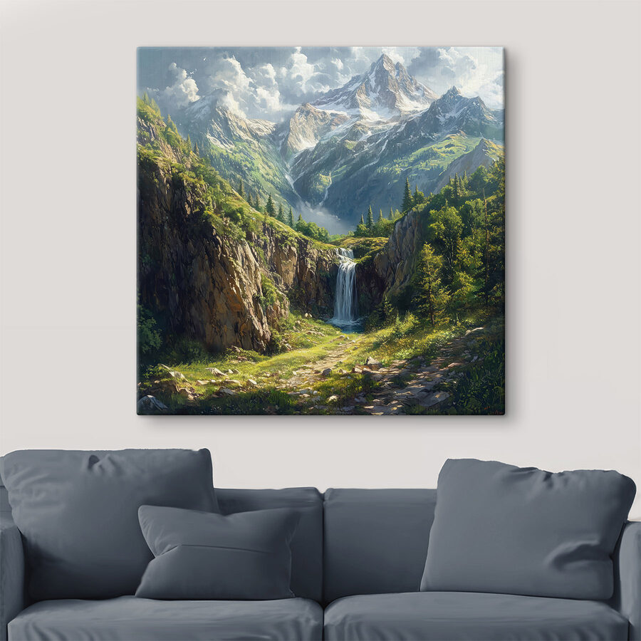 Stel je een serene ontsnapping voor in je woonkamer. Deze “Waterfall in a Mountain” canvasprint vangt een adembenemende scène waar weelderig groen en majestueuze bergtoppen elkaar ontmoeten. Het trapsgewijze water lijkt rustgevende geheimen te fluisteren terwijl de levendige kleuren het oog uitnodigen om te dwalen. Het is net een buitenavontuur zonder dat je wandelschoenen of insectenspray nodig hebt! Of het nu een gezellig hoekje is of een brede muur, dit stuk transformeert elke ruimte en geeft het een levendig en uitnodigend gevoel. Perfect voor dagdromers en natuurliefhebbers, het is een kunstwerk dat vreugde en misschien zelfs een beetje reislust opwekt. Als het daar gewoon hangt, is het een onmiddellijke herinnering aan de schoonheid buiten ons drukke leven – als een zacht duwtje in de rug om even stil te staan, adem te halen en de eenvoudige dingen te waarderen.