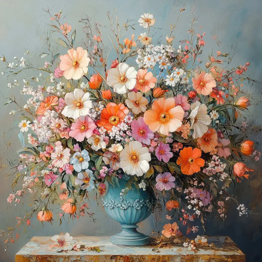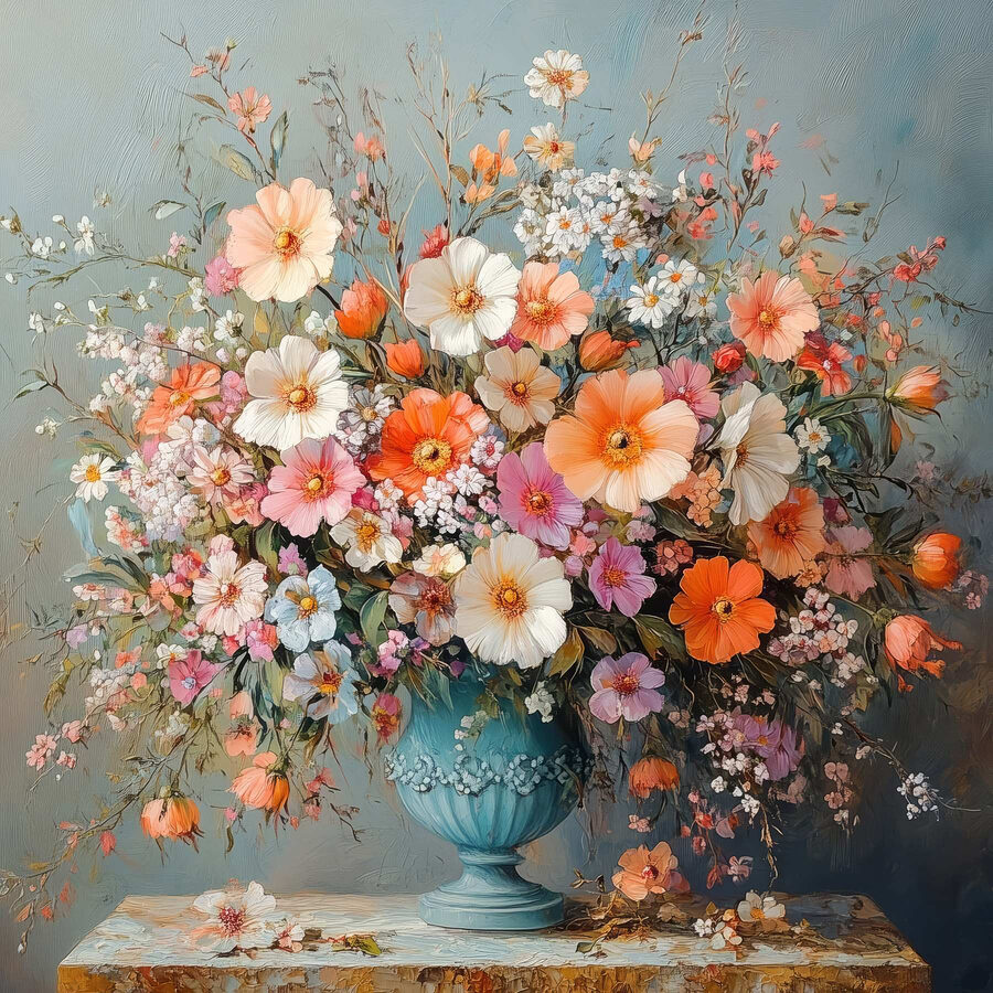 Breng wat leven in elke kamer met deze levendige canvasprint, “Vaas met bloemen op een stenen ondergrond”. Het is alsof je een vrolijke tuin in huis hebt. Stel je voor dat je elke ochtend wakker wordt en begroet wordt door die prachtige bloemen – dat zorgt gegarandeerd voor wat vrolijkheid! De mix van zachte pasteltinten en levendige kleuren is een lust voor het oog. Je zou zelfs het gevoel kunnen krijgen dat je een zonnige lentedag bent binnengestapt, zelfs als het buiten grijs is. Perfect voor die lege muur, dit stuk voegt persoonlijkheid toe zonder om aandacht te schreeuwen. Of het nu in een knus hoekje staat of in een drukke woonkamer, het is een mooie toets die elke ruimte een beetje warmer en uitnodigender laat aanvoelen. En wie houdt er niet van bloemen? Ze raken nooit uit de mode.