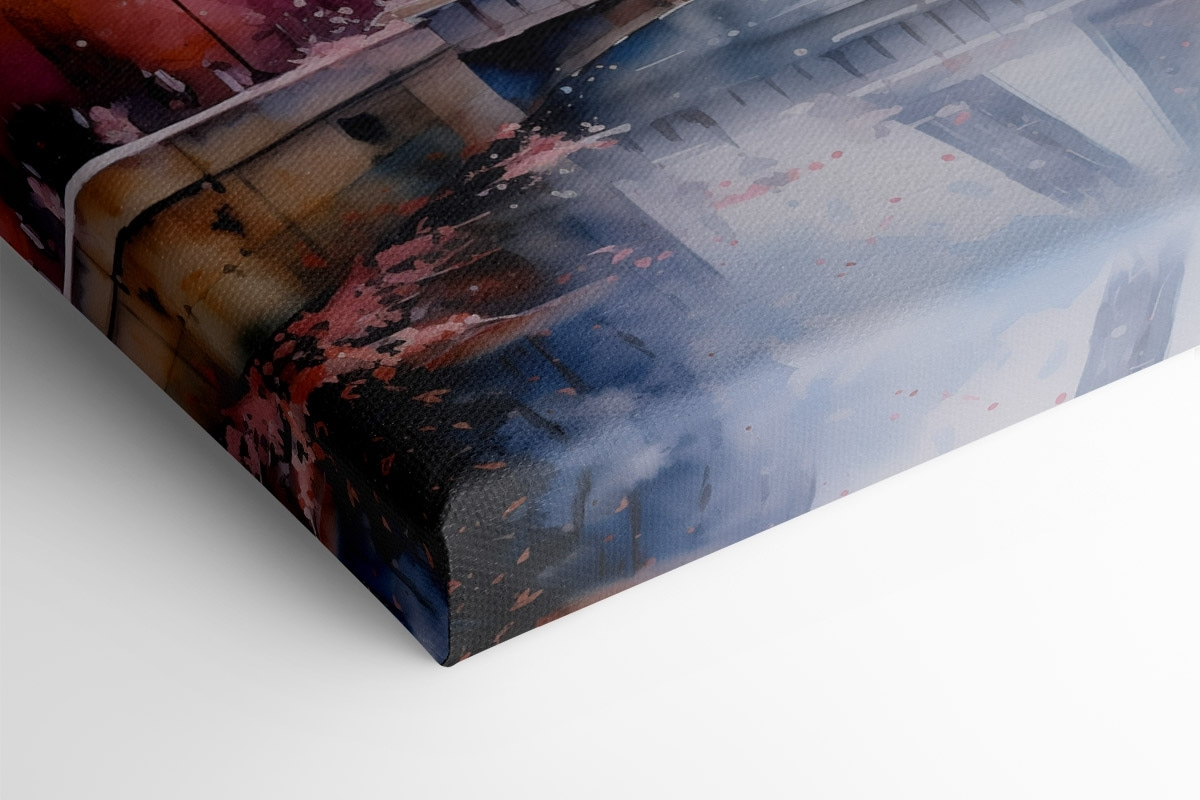 Transformeer je ruimte met deze betoverende canvasprint met een aquarelschilderij van een prachtige toren omringd door bloeiende roze bloemen en een schilderachtige brug. Stel je voor dat je op een luie namiddag aan je koffie nipt en het zachte briesje voelt terwijl de zachte kleuren je meevoeren naar een sereen park aan de rivier. De levendige tinten kunnen elke muur opfleuren, waardoor elke blik voelt als een kleine ontsnapping naar een dromeriger plek. Perfect om karakter toe te voegen aan een woonkamer of een gezellig hoekje, fluistert deze print over de schoonheid van de natuur en een romantische wandeling door bloemenwonderen. Wie wil er nu niet een beetje van die magie op zijn muur?