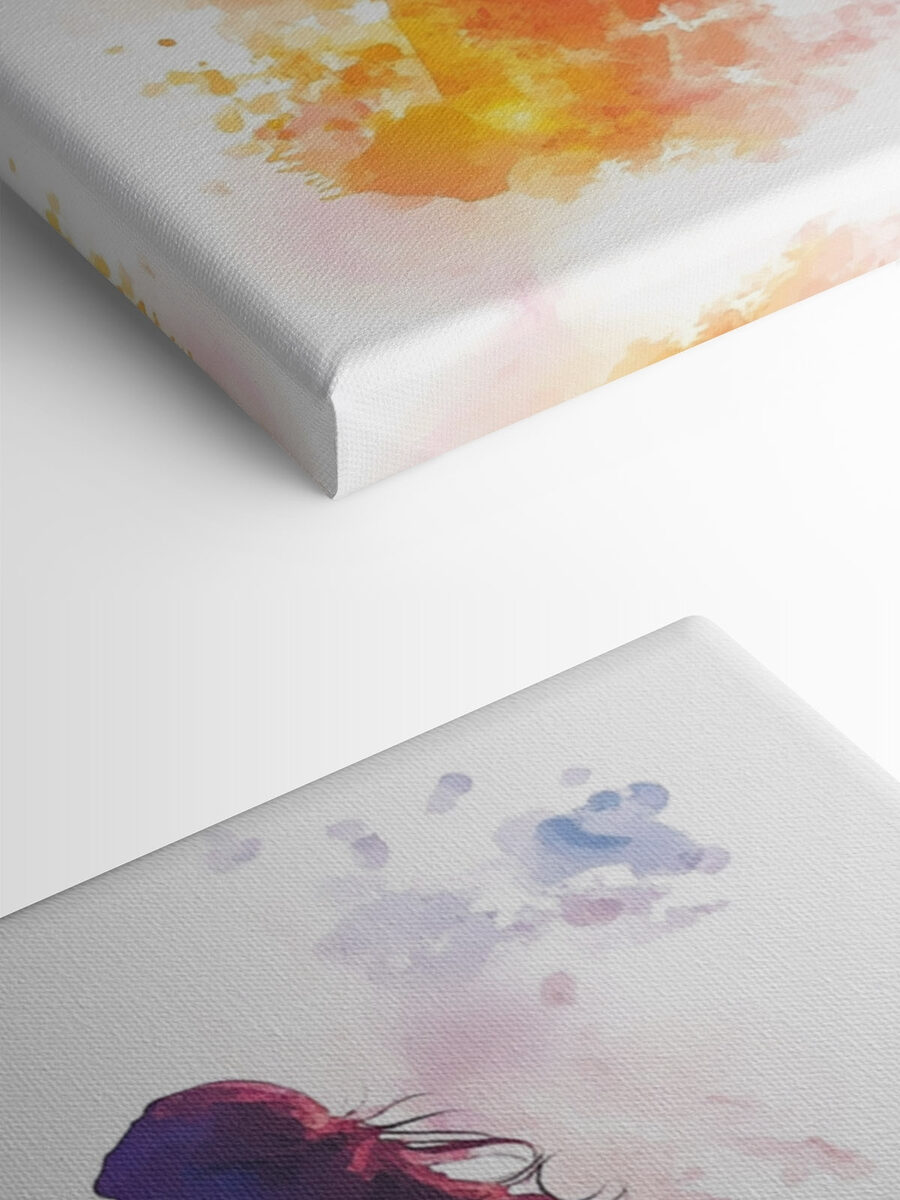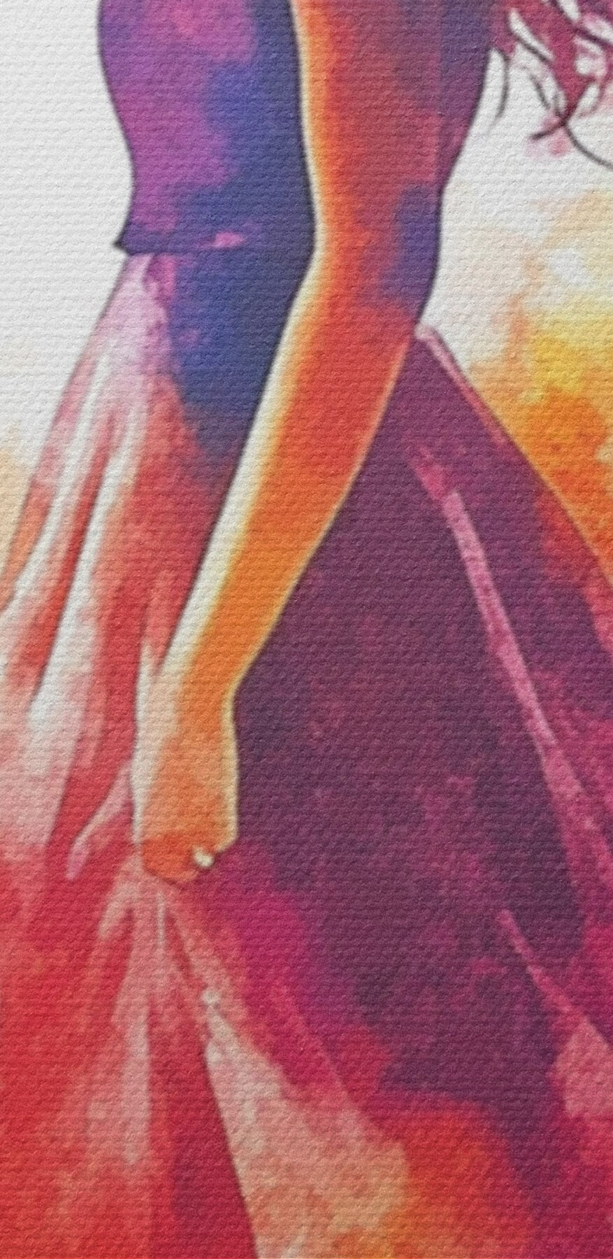 Maak je klaar om betoverd te worden door deze betoverende canvasprint, “Woman in a Dress”. Het brengt meteen een vleugje eigenzinnigheid en flair in elke ruimte. De mix van levendige kleuren en zachte penseelstreken vangt een dromerige scène die aanvoelt als een warme zonsondergang. Het is alsof de jurk door een zacht briesje stroomt en uitnodigt tot dagdromen over magische wandelingen en spontane avonturen.