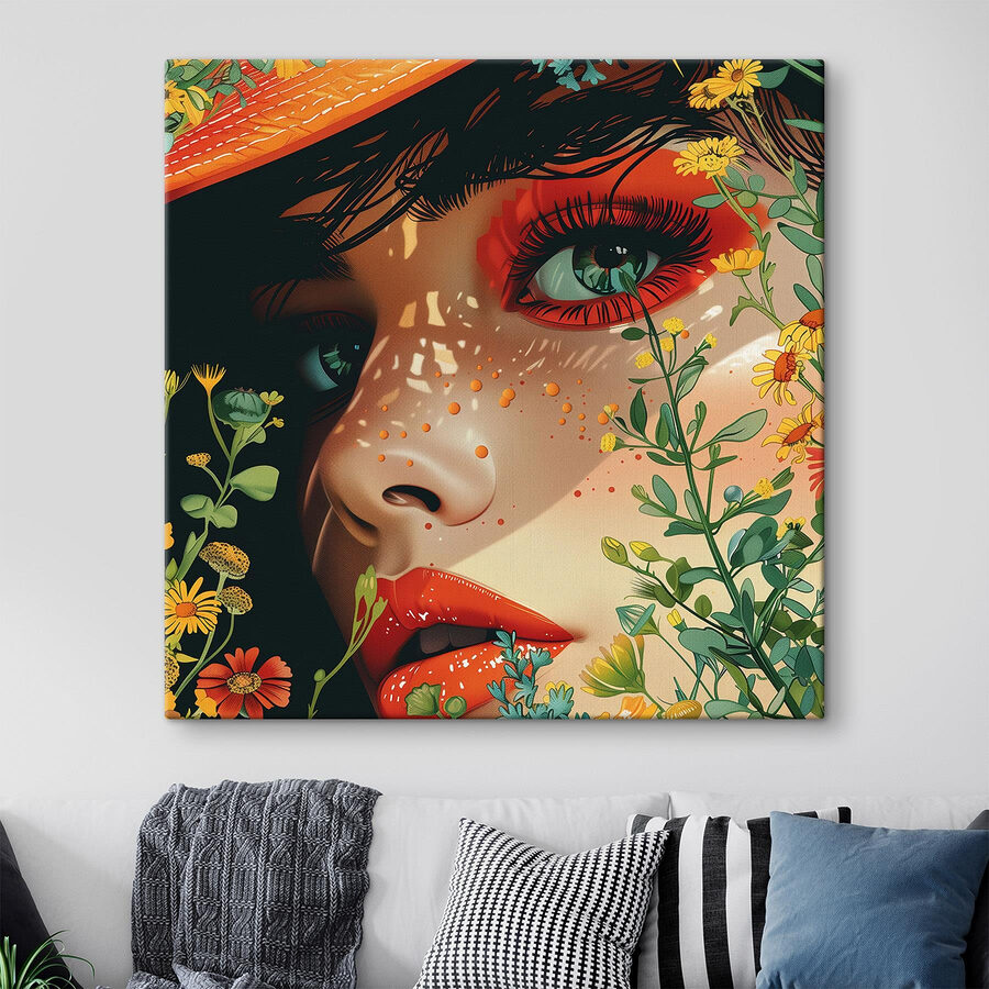 Helder en vol leven voegt deze canvasprint van een vrouw met een hoed omringd door bloemen een vleugje magie toe aan elke ruimte. Stel je voor dat je een kamer binnenloopt en begroet wordt door haar betoverende blik – die speelse sproeten en levendige kleuren zijn als een frisse wind. Ze is perfect voor een gezellig hoekje of een inspirerende werkplek en brengt een vleugje natuur binnenshuis. Het is alsof je een tuintje hebt dat geen water nodig heeft! Geweldig om een gesprek op gang te brengen, dit stuk fluistert verhalen van zonnige dagen en bloeiende avonturen. Echt, wie houdt er niet van een dagelijkse dosis bloemenvreugde?