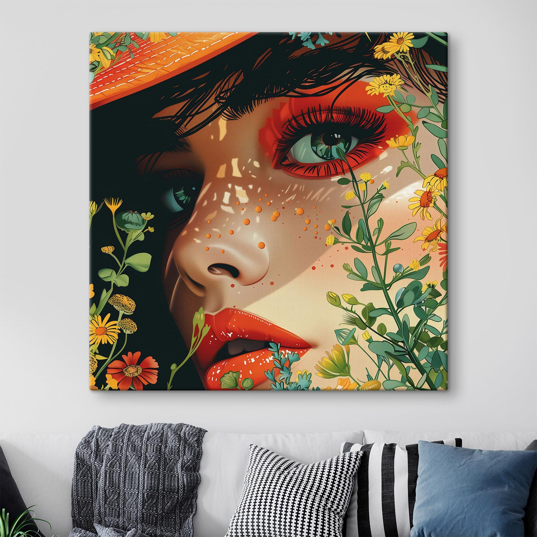 Helder en vol leven voegt deze canvasprint van een vrouw met een hoed omringd door bloemen een vleugje magie toe aan elke ruimte. Stel je voor dat je een kamer binnenloopt en begroet wordt door haar betoverende blik – die speelse sproeten en levendige kleuren zijn als een frisse wind. Ze is perfect voor een gezellig hoekje of een inspirerende werkplek en brengt een vleugje natuur binnenshuis. Het is alsof je een tuintje hebt dat geen water nodig heeft! Geweldig om een gesprek op gang te brengen, dit stuk fluistert verhalen van zonnige dagen en bloeiende avonturen. Echt, wie houdt er niet van een dagelijkse dosis bloemenvreugde?