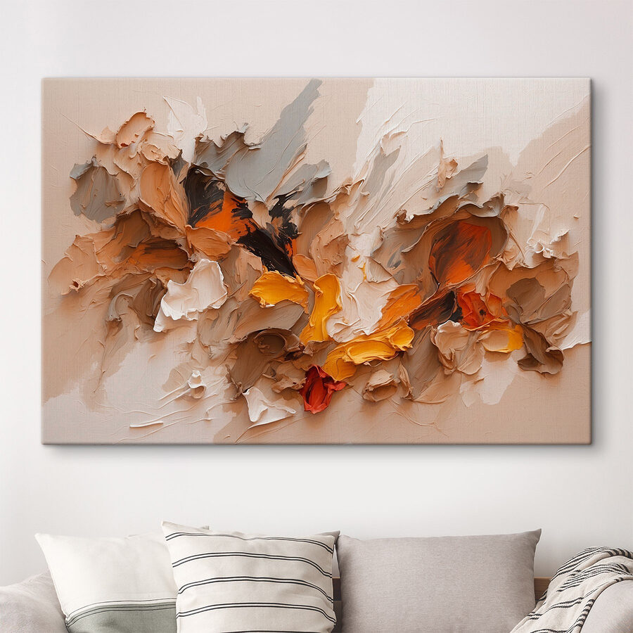 Verander elke ruimte in een visueel genot met deze levendige canvasprint. “Canvas Schilderijen Painting of Different Colors” trekt je naar binnen met zijn prachtige mix van warm oranje, zacht beige en rijke bruintinten. Het is net een mini-zonsondergang op je muur! Stel je voor dat je vrienden op bezoek krijgt en terwijl ze aan hun koffie nippen, dwalen hun ogen af naar dit prachtige stuk – een echte gespreksstarter.