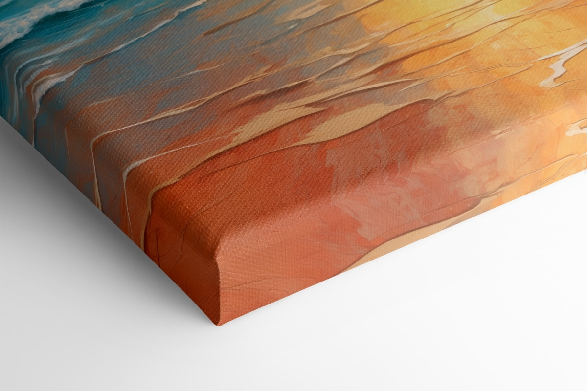 Transformeer elke kamer met deze levendige canvasprint van een strandtafereel dat de essentie van ontspanning weergeeft. Stel je de ondergaande zon voor, die een gouden gloed over de golven en de rotskust werpt. Het is als een minivakantie voor je muren! Dit kunstwerk nodigt je uit om diep adem te halen, alsof je de frisse zeebries kunt voelen terwijl je dagdroomt over lange strandwandelingen. Het is perfect voor een woonkamer of een gezellig hoekje en voegt een vleugje kleur en sereniteit toe. Een blik op het tafereel neemt je mee naar je favoriete vakantie aan zee!