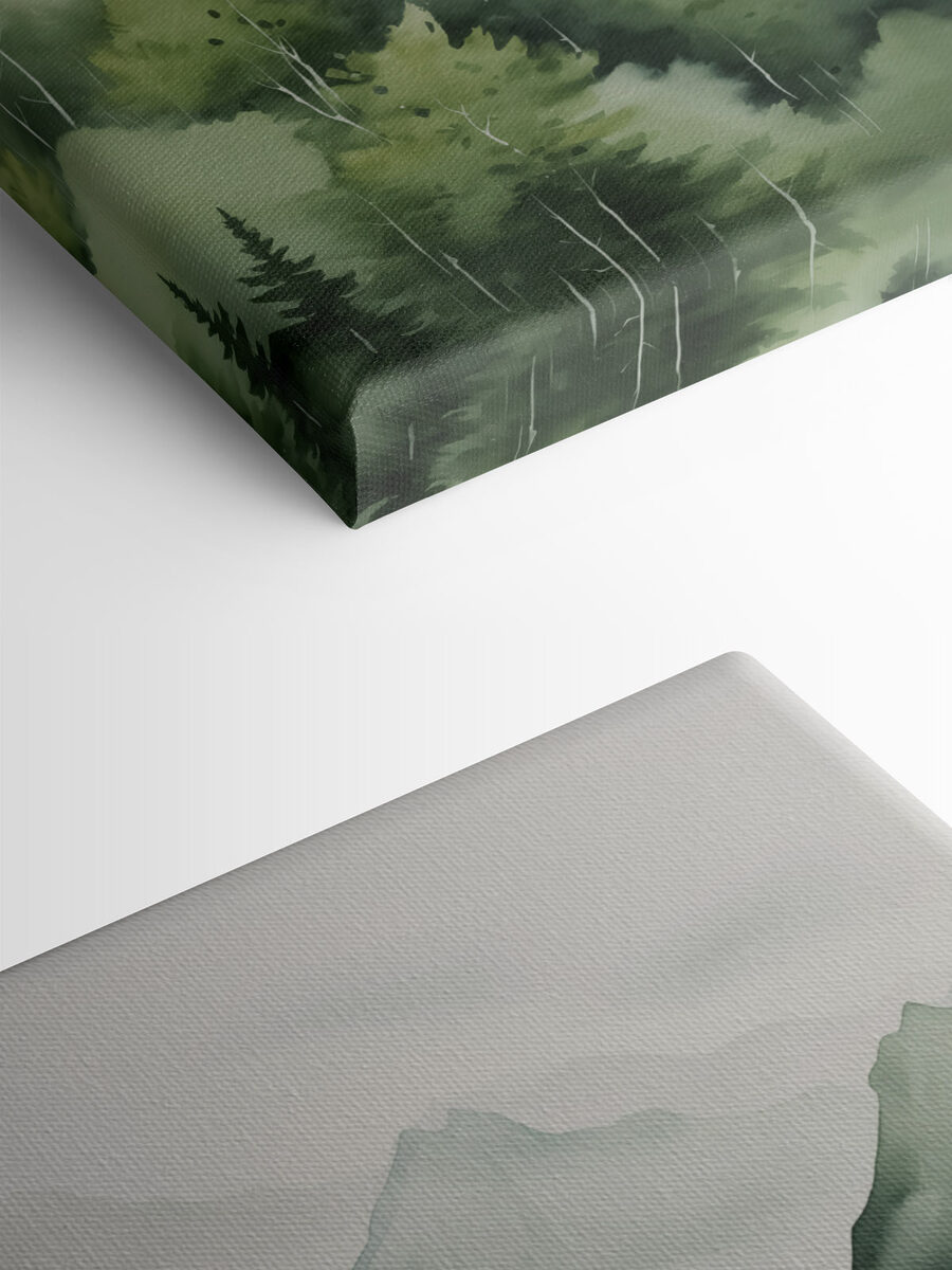Tover je ruimte om in een gezellig toevluchtsoord met deze prachtige canvasprint van een bergketen. Stel je voor dat je elke dag wakker wordt met de zachte tinten groen en zachte lagen mist die je uitnodigen om de natuur te verkennen, zelfs als de enige top die je verovert die stapel wasgoed is. Elke penseelstreek vangt de serene schoonheid van de natuur, waardoor het een perfecte ontsnapping is aan de chaos van het dagelijks leven. Hang hem in je woon- of slaapkamer en voel je zorgen wegsmelten terwijl je verdwaalt in de rust van de bergen. Het is meer dan alleen decor; het is alsof er een frisse wind aan je muur hangt.