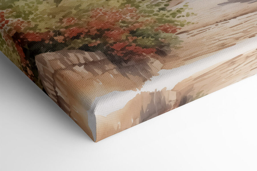 Maak van elke kamer een gezellige plek met deze charmante canvasprint van een aquareldorp. Het is alsof je een warme bries en de geur van bloeiende bloemen in huis haalt. Stel je voor: lekker onderuit met een boek, het zonlicht dat zachtjes de kleuren van schilderachtige huizen en weelderig groen verlicht, terwijl een kopje thee naast je dampt. Deze print fluistert verhalen van luie middagen en rustige wandelingen over geplaveide paden. Perfect voor iedereen die een vleugje sereniteit wil – hang hem op en laat je dagdromen. Het is niet alleen kunst; het is een uitnodiging om te wandelen zonder de bank te verlaten!