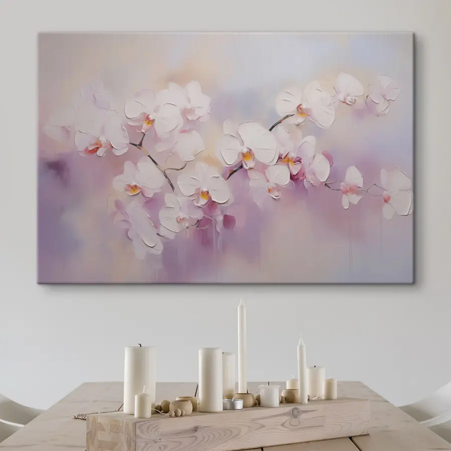 Fleur elke kamer op met dit dromerige canvas schilderij van witte bloemen. Het is alsof je een frisse lentebries in huis haalt – zonder allergieën! Stel je voor dat je aan je koffie nipt terwijl deze schoonheden aan je muur hangen, hun zachte bloemblaadjes fluisteren kalme vibes. De zachte roze en witte tinten dansen samen en voegen een vleugje gratie van de natuur toe aan je interieur. Dit kunstwerk is perfect voor een gezellige woonkamer of een rustige slaapkamer en nodigt elke gast uit om even stil te staan en het te bewonderen. Het is meer dan decor; het is een dagelijkse dosis inspiratie en vreugde. Wie zou dat niet willen?