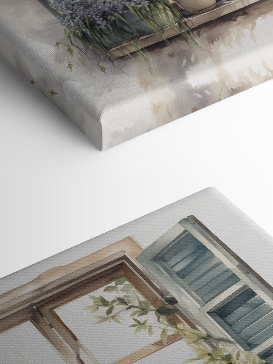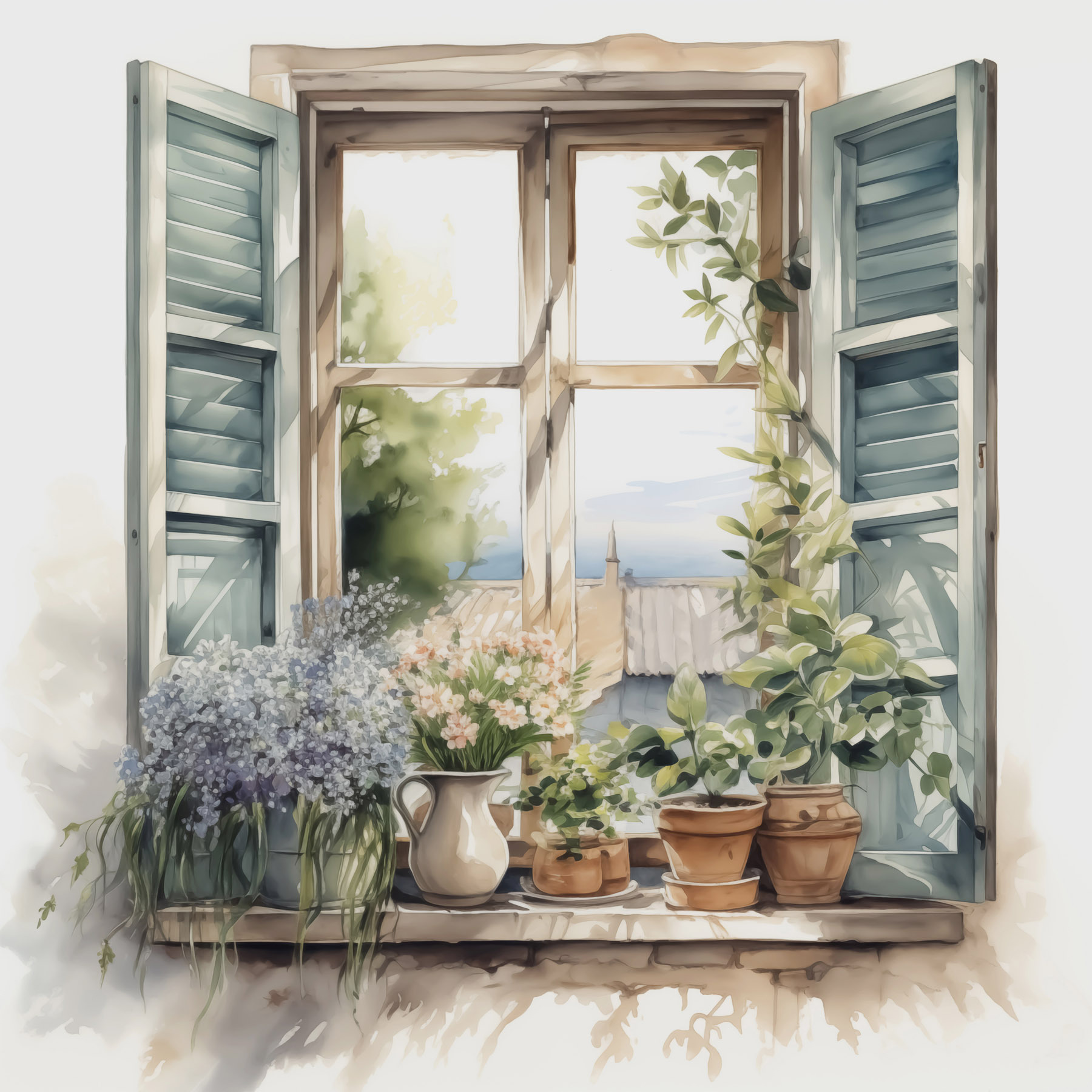Transformeer je ruimte met dit prachtige aquarelschilderij van een raam vol potplanten. Stel je voor dat je elke dag langs dit charmante tafereel wandelt – zonlicht dat door de luiken schijnt en die levendige planten die geheimen van de schoonheid van de natuur fluisteren. Elke bloem en elk blad voelt bijna levend aan en nodigt je uit om even stil te staan en diep adem te halen. Het is net een minituin, zonder dat je water hoeft te geven! Dit kunstwerk is perfect voor gezellige hoekjes of muren die een vleugje frisheid nodig hebben en brengt moeiteloos vrolijkheid. Wie wil er immers geen stukje natuur binnenshuis?
