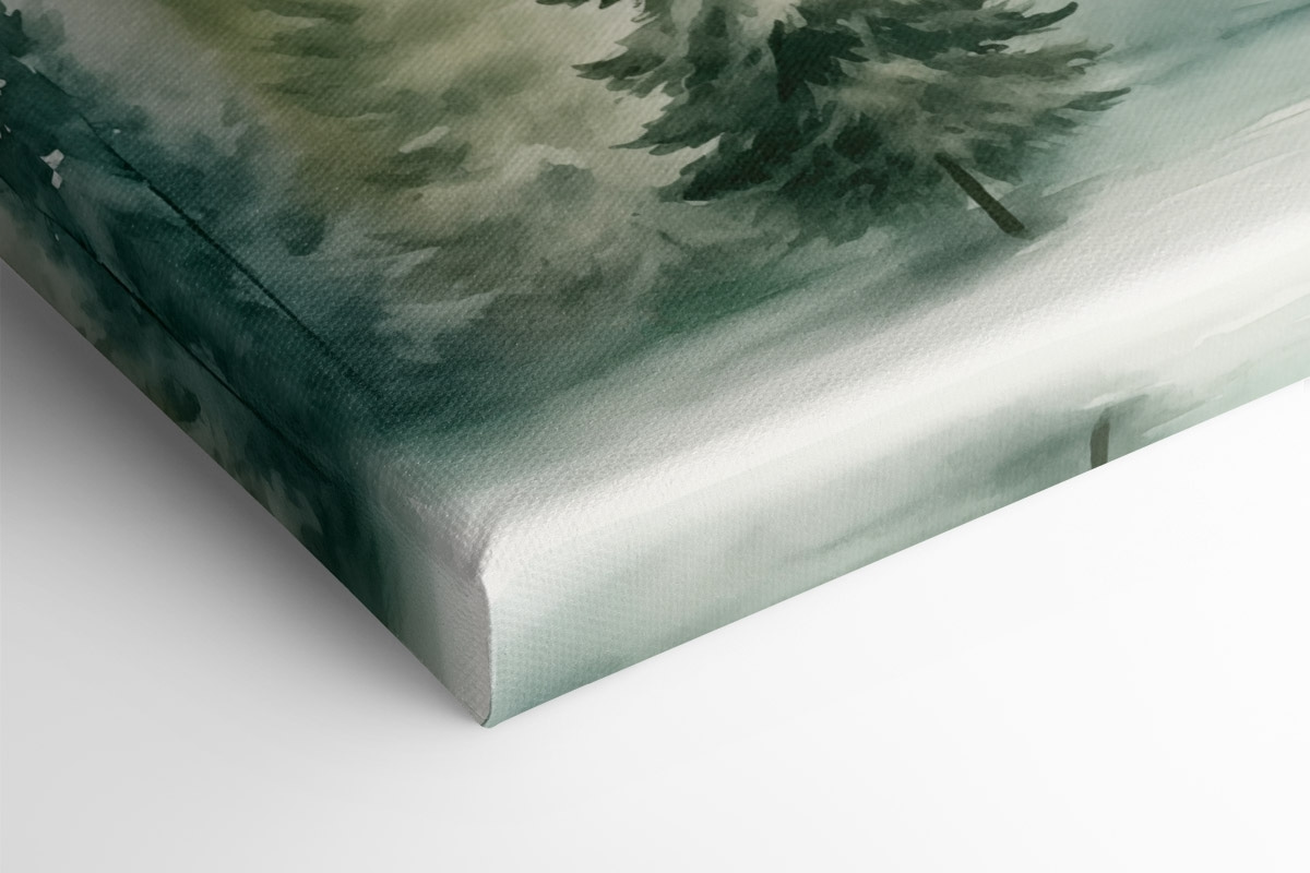 Dompel jezelf onder in een rustige ontsnapping met deze prachtige aquarel canvasprint van bomen gehuld in mist. Stelt u zich eens voor: lekker knus op een regenachtige dag, kopje thee in de hand, terwijl dit serene kunstwerk een rustgevende sfeer in uw ruimte brengt. Het zachte groen en de zachte grijstinten nodigen de essentie van een vredig bos uit tot in je huis. Of het nu in je woonkamer hangt of in een gezellig leeshoekje, dit kunstwerk voegt een vleugje magie van de natuur toe en herinnert ons eraan dat het soms goed is om even rustig aan te doen en adem te halen. Perfect voor natuurliefhebbers of iedereen die behoefte heeft aan een stukje rust in een hectische wereld!