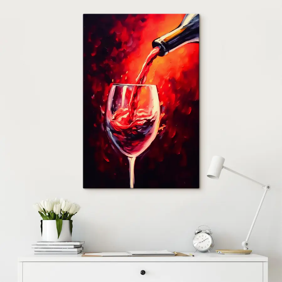 Geef je kamer wat persoonlijkheid met deze prachtige canvasprint van wijn die in een glas vloeit. Het is net een uitnodiging om tot rust te komen na een lange dag, nietwaar? De rijke roodtinten en warme tinten geven het een knus gevoel – een perfecte gespreksstarter voor etentjes of gewoon een ontspannen avond thuis. Stel je voor dat het in de keuken hangt, misschien in combinatie met een mooie fles op het aanrecht, en dat het vreugde en misschien een beetje humor opwekt bij gemorste wijnverhalen. Het is niet zomaar kunst; het is een ervaring die fluistert, “Ontspan, je verdient dit.” Omarm de sfeer en laat de goede tijden rollen!