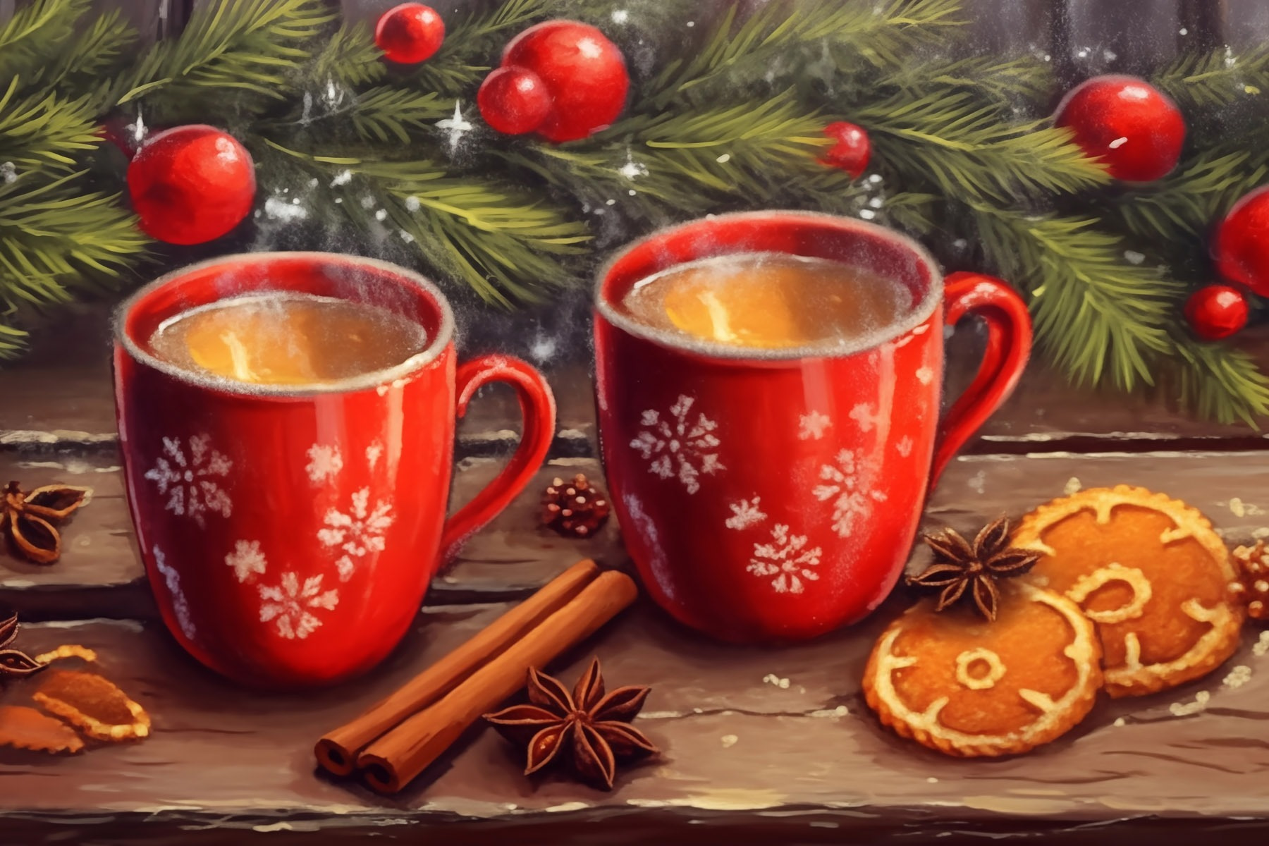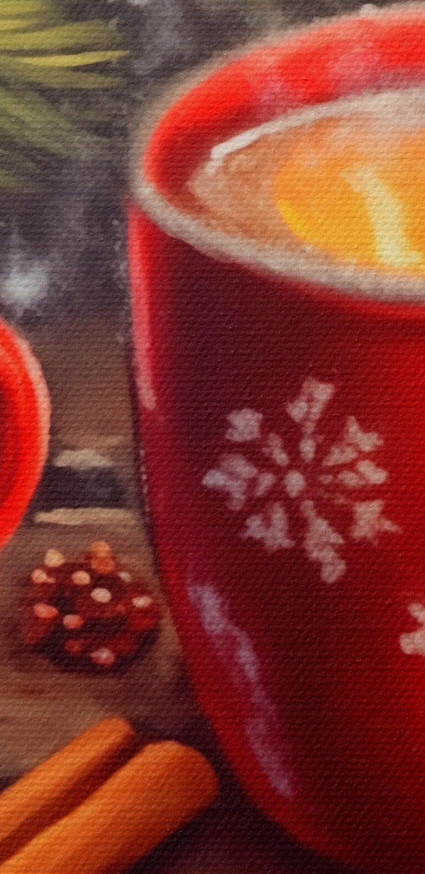 Stelt u zich eens voor hoe het is om op een kille avond gezellig samen te zijn met deze prachtige canvasprint met twee charmante rode mokken, versierd met witte patronen, wachtend om hun warme, kruidige geheimen prijs te geven. Genesteld naast een strooisel van kaneelstokjes en steranijs, schetst het het perfecte beeld van comfort en tevredenheid. Hang het op in een keuken of woonkamer en zie hoe het direct de stemming opvrolijkt, net als die eerste slok warme chocolademelk! Het is niet zomaar kunst; het is een uitnodiging om te genieten van de kleine momenten in het leven, zoals warme drankjes en zelfgebakken koekjes op een winteravond. Wie zou zich niet een beetje vrolijker voelen als hij hiernaar kijkt?