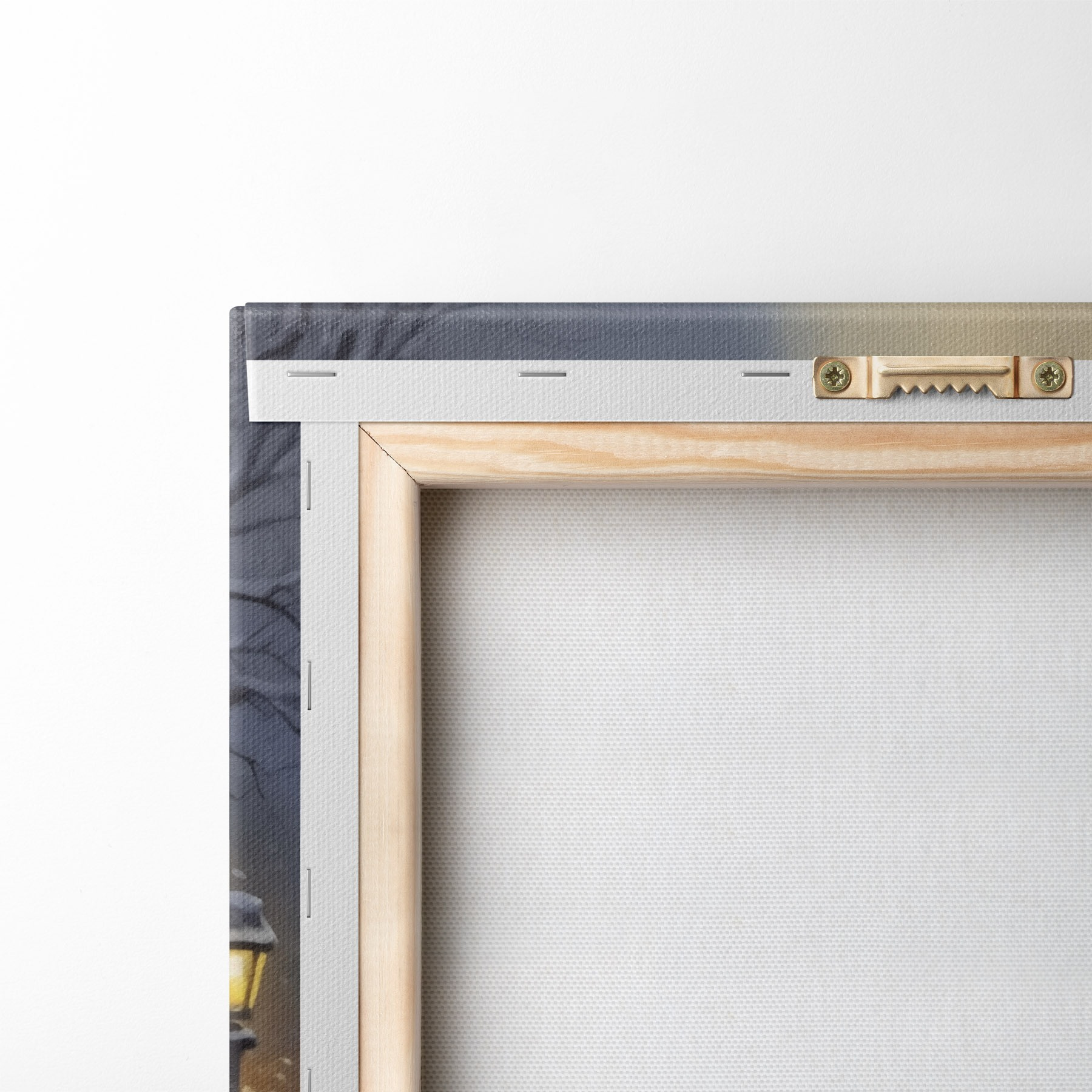 Stel je voor dat je lekker knus in een kamer zit met de zachte stilte van vallende sneeuw, en plotseling word je meegenomen naar een andere tijd met deze betoverende canvasprint. “Train on the Tracks in the Snow” vangt de charme van een oude stoomlocomotief die langs een schilderachtig, besneeuwd dorp raast. De warme gloed van de ramen verwelkomt je thuis, terwijl de zachte witte sneeuw alles in het zicht bedekt. Hang hem op en het is alsof je een klein winterwonderland in je kamer uitnodigt. Perfect om gesprekken op gang te brengen of gewoon die nostalgische warmte op te roepen – want wie houdt er nou niet van een beetje treinmagie, vooral als het bedekt is met sneeuwvlokken?