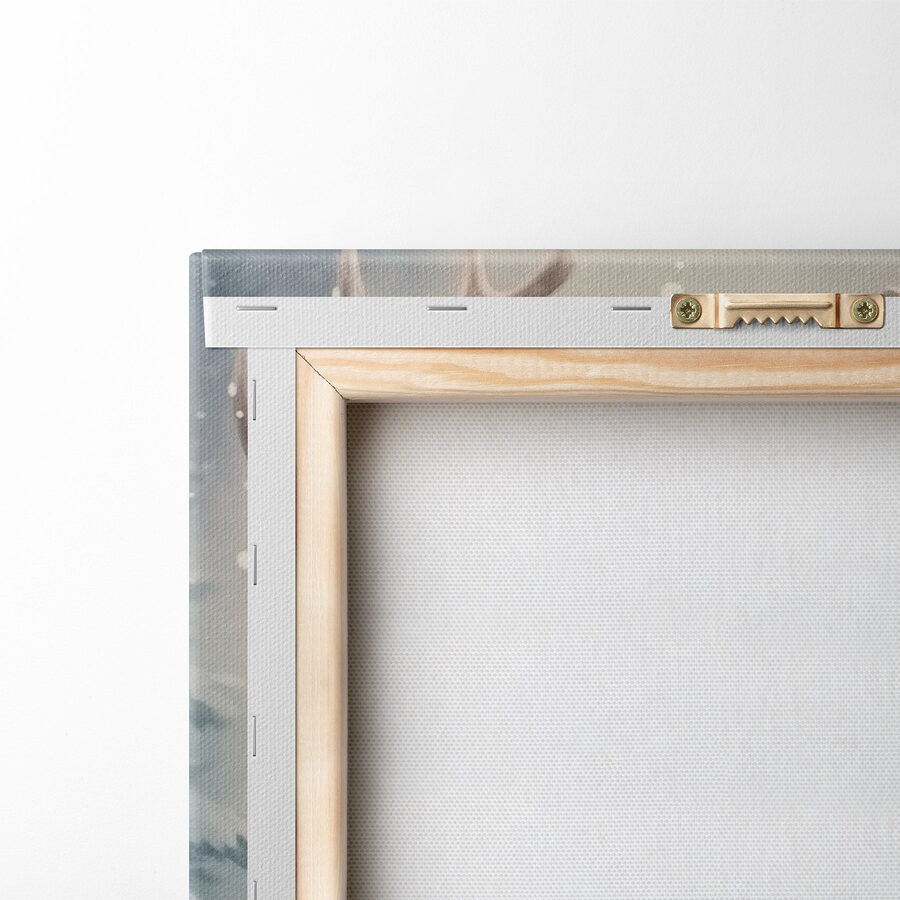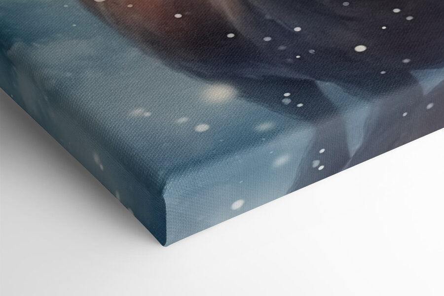 Stel je een serene winterscène voor waarin een majestueus hert met een opvallend gewei zelfverzekerd staat te midden van zachtjes vallende sneeuwvlokken. Deze canvasprint legt niet alleen de schoonheid van de natuur vast, maar nodigt het wonder van het bos ook bij je thuis uit. Stel je voor dat het sierlijk aan de muur van een woonkamer hangt en dient als dagelijkse herinnering aan rust en het buitenleven. Vrienden zullen het bewonderen en misschien brengt het gesprekken op gang over wandelavonturen of gezellige sneeuwdagen. Bovendien lijken die zachte ogen van het hert een heel eigen verhaal te vertellen – mysterieus en wijs. Het is als een frisse boslucht, perfect om een vleugje natuurlijke charme toe te voegen aan elke ruimte.