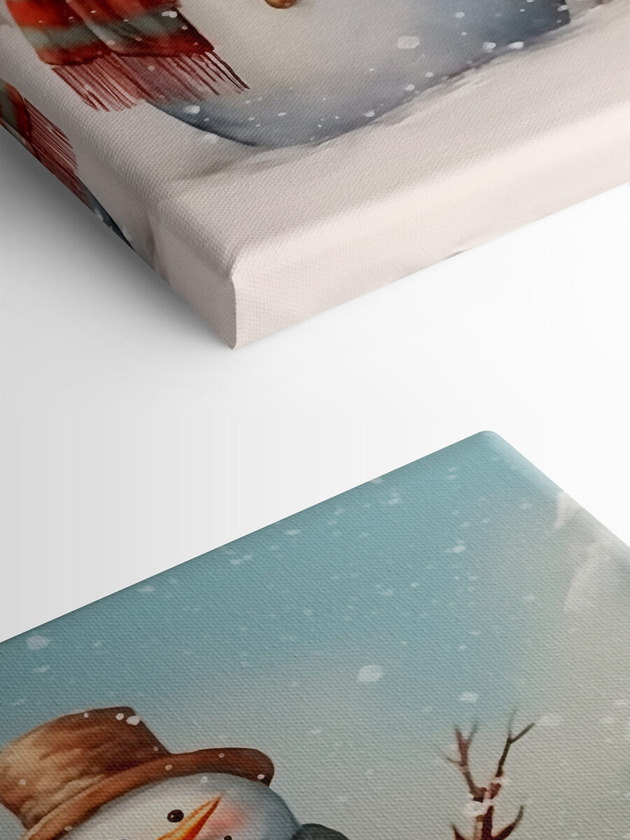 Stel je een winterwonderland voor in je woonkamer! Op deze vrolijke canvasprint staat een drietal verrukkelijke sneeuwpoppen, allemaal uitgedost met kleurrijke sjaals en charmante hoge hoeden, trots in een besneeuwd landschap. Het is alsof ze wachten op een sneeuwballengevecht of een gezellig kopje chocolademelk. De zachte kleuren en zachte sneeuwval geven het geheel een gezellig tintje en roepen die magische vakantiesfeer op. Hang het op en het zal zeker warme gesprekken en zoete nostalgie oproepen. Perfect om een saai hoekje op te fleuren of een vleugje vreugde aan elke ruimte toe te voegen. Wie zou er niet glimlachen om die vriendelijke gezichten?