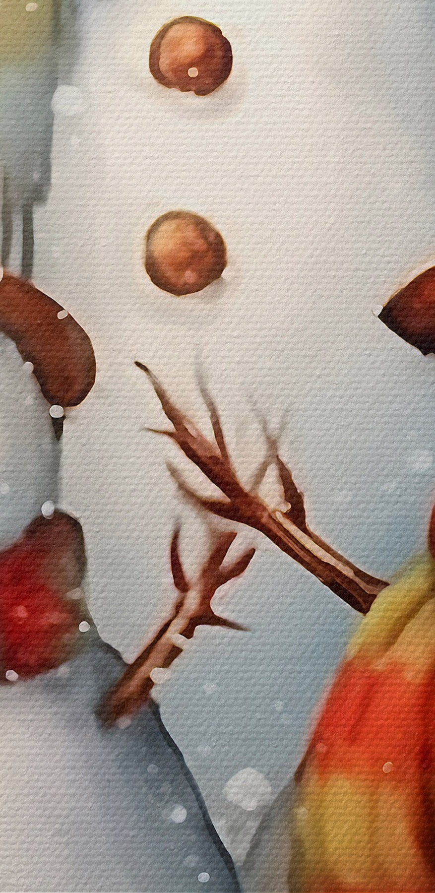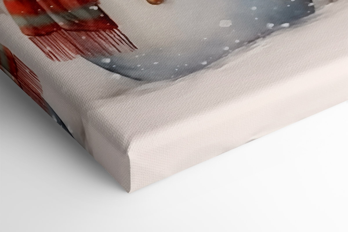 Stel je een winterwonderland voor in je woonkamer! Op deze vrolijke canvasprint staat een drietal verrukkelijke sneeuwpoppen, allemaal uitgedost met kleurrijke sjaals en charmante hoge hoeden, trots in een besneeuwd landschap. Het is alsof ze wachten op een sneeuwballengevecht of een gezellig kopje chocolademelk. De zachte kleuren en zachte sneeuwval geven het geheel een gezellig tintje en roepen die magische vakantiesfeer op. Hang het op en het zal zeker warme gesprekken en zoete nostalgie oproepen. Perfect om een saai hoekje op te fleuren of een vleugje vreugde aan elke ruimte toe te voegen. Wie zou er niet glimlachen om die vriendelijke gezichten?