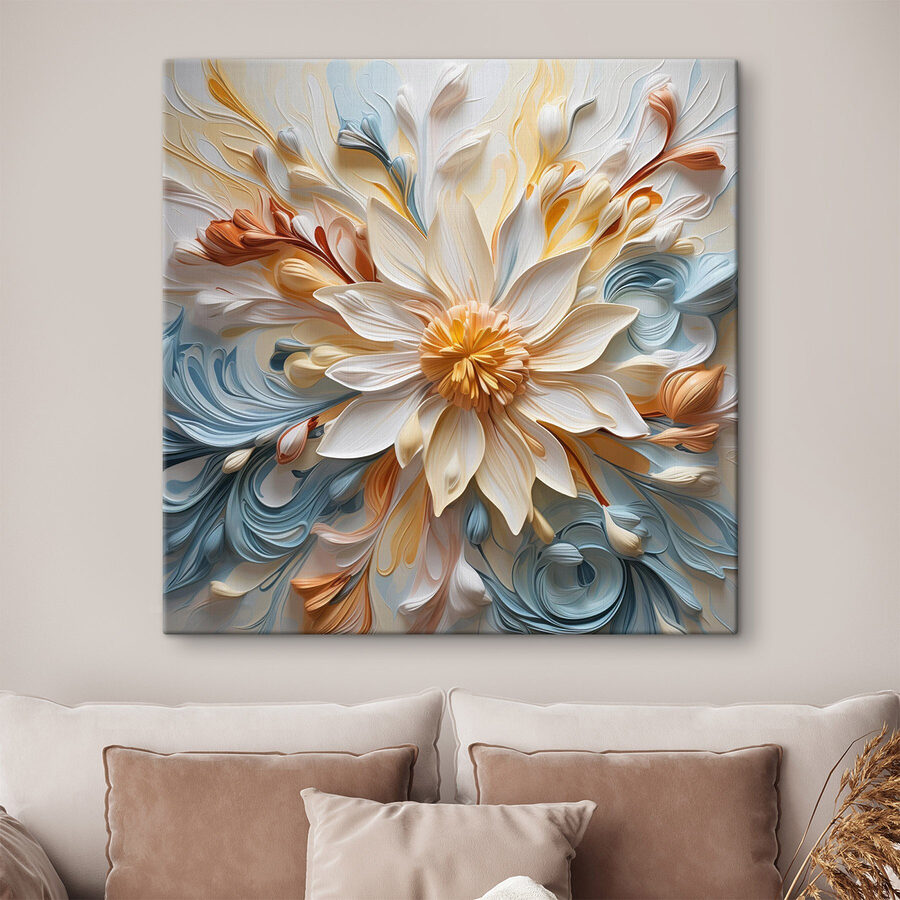 Breng leven in elke kamer met deze prachtige “Canvas Print Flower Made Out of Paper”. Het is niet zomaar kunst; het is een verrukkelijke explosie van bloemen die gasten een dubbele blik zal laten werpen. De kleuren dansen van het canvas – zacht blauw, warm geel en romig wit – en creëren een sfeer die zowel fris als gezellig is. Stel je voor dat deze schoonheid boven een bank hangt, zodat elk koffiekletsje aanvoelt als een mini tuinfeestje. De speelse textuur en ingewikkelde details brengen een beetje eigenzinnigheid en vreugde. Het is alsof de natuur en creativiteit een charmant rendez-vous hebben gehad in je woonkamer. Perfect voor wie houdt van een vleugje onverwacht!
