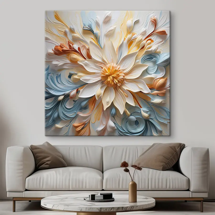 Breng leven in elke kamer met deze prachtige “Canvas Print Flower Made Out of Paper”. Het is niet zomaar kunst; het is een verrukkelijke explosie van bloemen die gasten een dubbele blik zal laten werpen. De kleuren dansen van het canvas – zacht blauw, warm geel en romig wit – en creëren een sfeer die zowel fris als gezellig is. Stel je voor dat deze schoonheid boven een bank hangt, zodat elk koffiekletsje aanvoelt als een mini tuinfeestje. De speelse textuur en ingewikkelde details brengen een beetje eigenzinnigheid en vreugde. Het is alsof de natuur en creativiteit een charmant rendez-vous hebben gehad in je woonkamer. Perfect voor wie houdt van een vleugje onverwacht!
