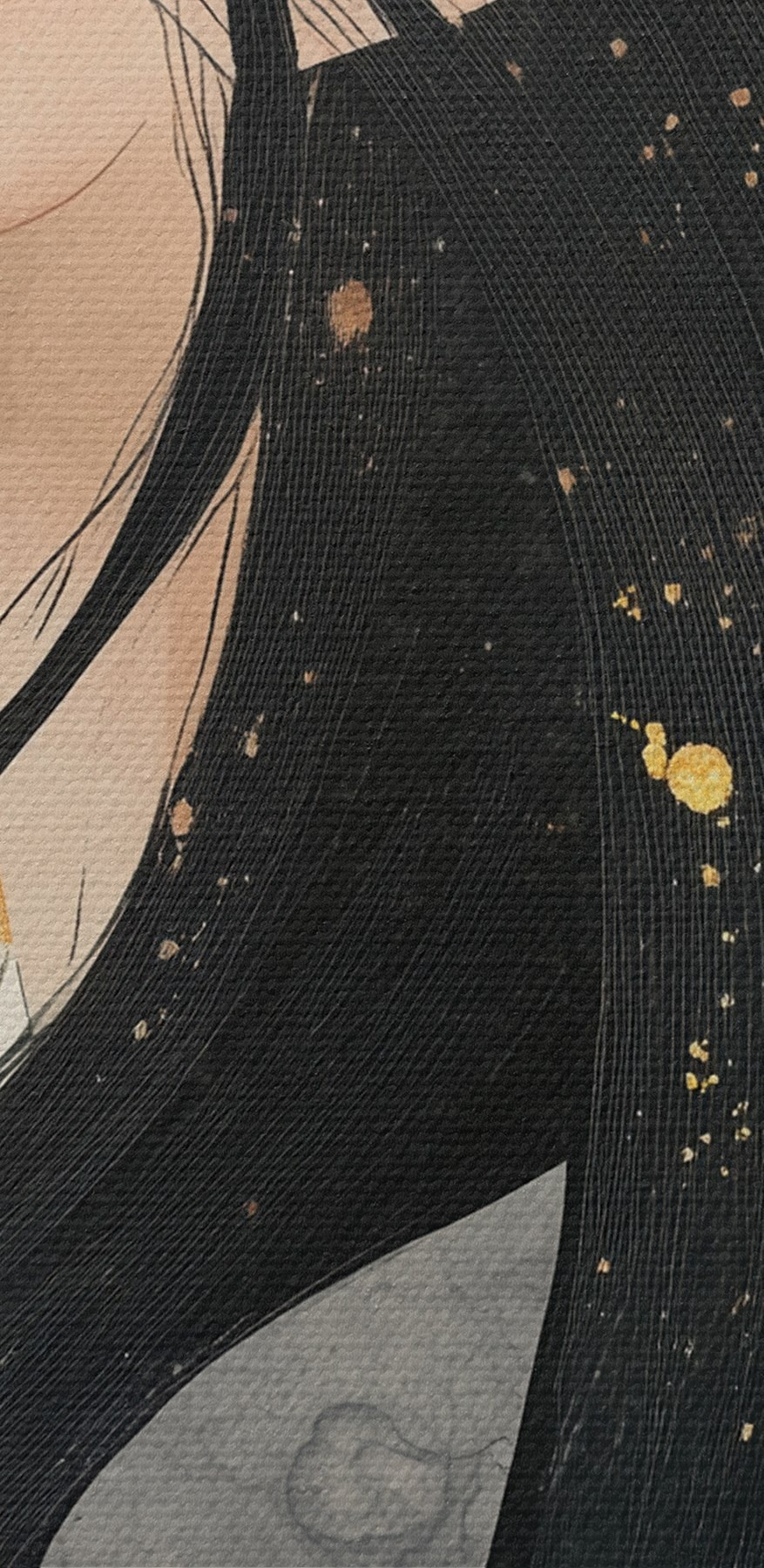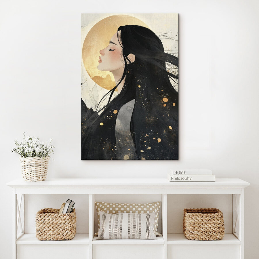 Maak kennis met “Etherische schoonheid in stille contemplatie”. Deze betoverende canvasprint legt een moment in de tijd vast en nodigt iedereen die ernaar kijkt uit om even stil te staan en adem te halen. Zie het al hangen in een knus hoekje of boven een leesstoel, en inspireert in stilte tot diepe gedachten of dagdromen. Met wapperende haren en een serene uitdrukking lijkt de figuur geheimen van vrede en introspectie te fluisteren. Het is alsof je een zachtaardige vriend hebt die altijd weet wanneer hij het rustig aan moet doen. Perfect voor een rustig hoekje of een opvallende muur – waar het ook geplaatst wordt, het zal zeker een beetje magie in het dagelijks leven brengen.