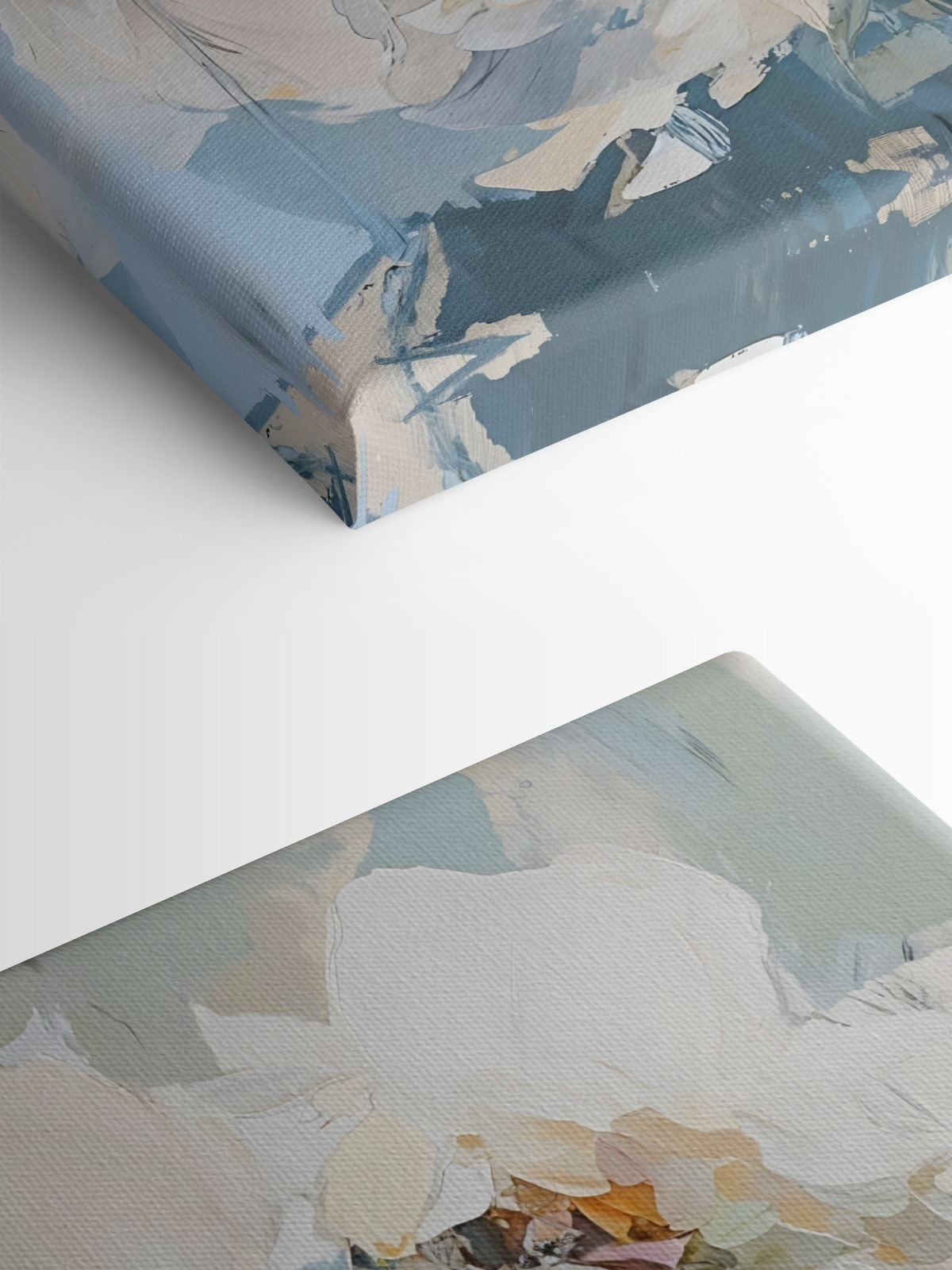 Fleur elke kamer op met deze prachtige canvasprint met delicate bloemen tegen een rustgevende blauwe achtergrond. Het is alsof je een kleine tuin in huis hebt – zonder dat je water hoeft te geven of vervelende bijen. Stel je voor dat je langsloopt, een glimp opvangt van die zachte bloemblaadjes en je meteen opgetogen voelt. Perfect om een vleugje elegantie toe te voegen aan een woonkamer, slaapkamer of zelfs een gezellig leeshoekje. Elke penseelstreek danst met kleur, waardoor het die perfecte artistieke flair krijgt. Het is de schoonheid van de natuur – altijd in bloei, altijd een glimlach. Wie zou dat niet willen?