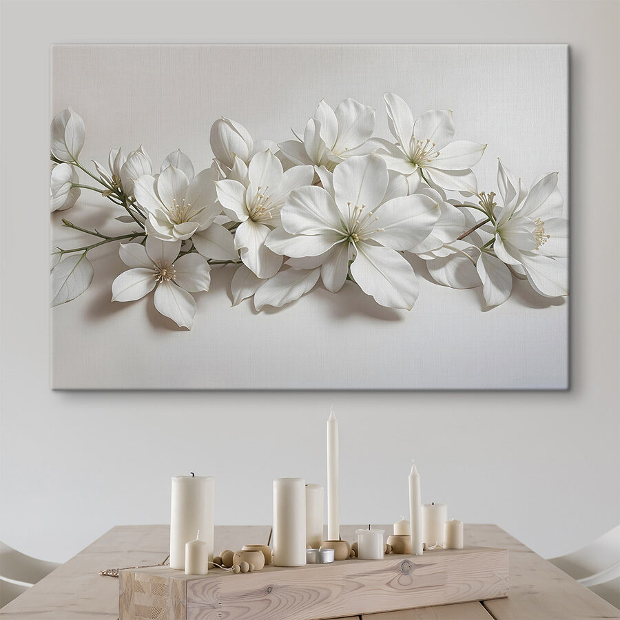 Transformeer elke ruimte met deze charmante canvasprint, “Canvas Schilderijen Groep van Witte Bloemen”. Stel je die mooie momenten voor waarop verse bloemen een glimlach op je gezicht toveren – dit kunstwerk legt dat gevoel perfect vast. De delicate bloemen lijken zachte geheimen van de natuur te fluisteren en nodigen warmte en rust uit in je huis. Het is alsof je een tuintje aan de muur hebt, zonder gieter. Ideaal om een knus hoekje op te fleuren of de woonkamer op te frissen. Geloof me, elke blik voelt als een frisse wind. Wie wil er nu niet een vleugje bloemenvreugde?