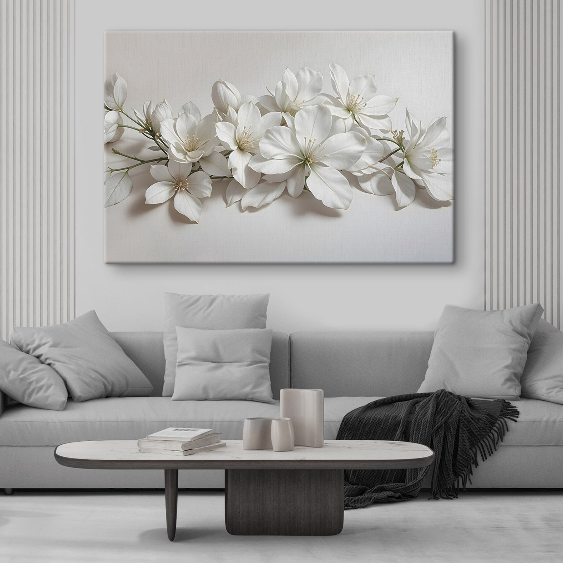 Transformeer elke ruimte met deze charmante canvasprint, “Canvas Schilderijen Groep van Witte Bloemen”. Stel je die mooie momenten voor waarop verse bloemen een glimlach op je gezicht toveren – dit kunstwerk legt dat gevoel perfect vast. De delicate bloemen lijken zachte geheimen van de natuur te fluisteren en nodigen warmte en rust uit in je huis. Het is alsof je een tuintje aan de muur hebt, zonder gieter. Ideaal om een knus hoekje op te fleuren of de woonkamer op te frissen. Geloof me, elke blik voelt als een frisse wind. Wie wil er nu niet een vleugje bloemenvreugde?