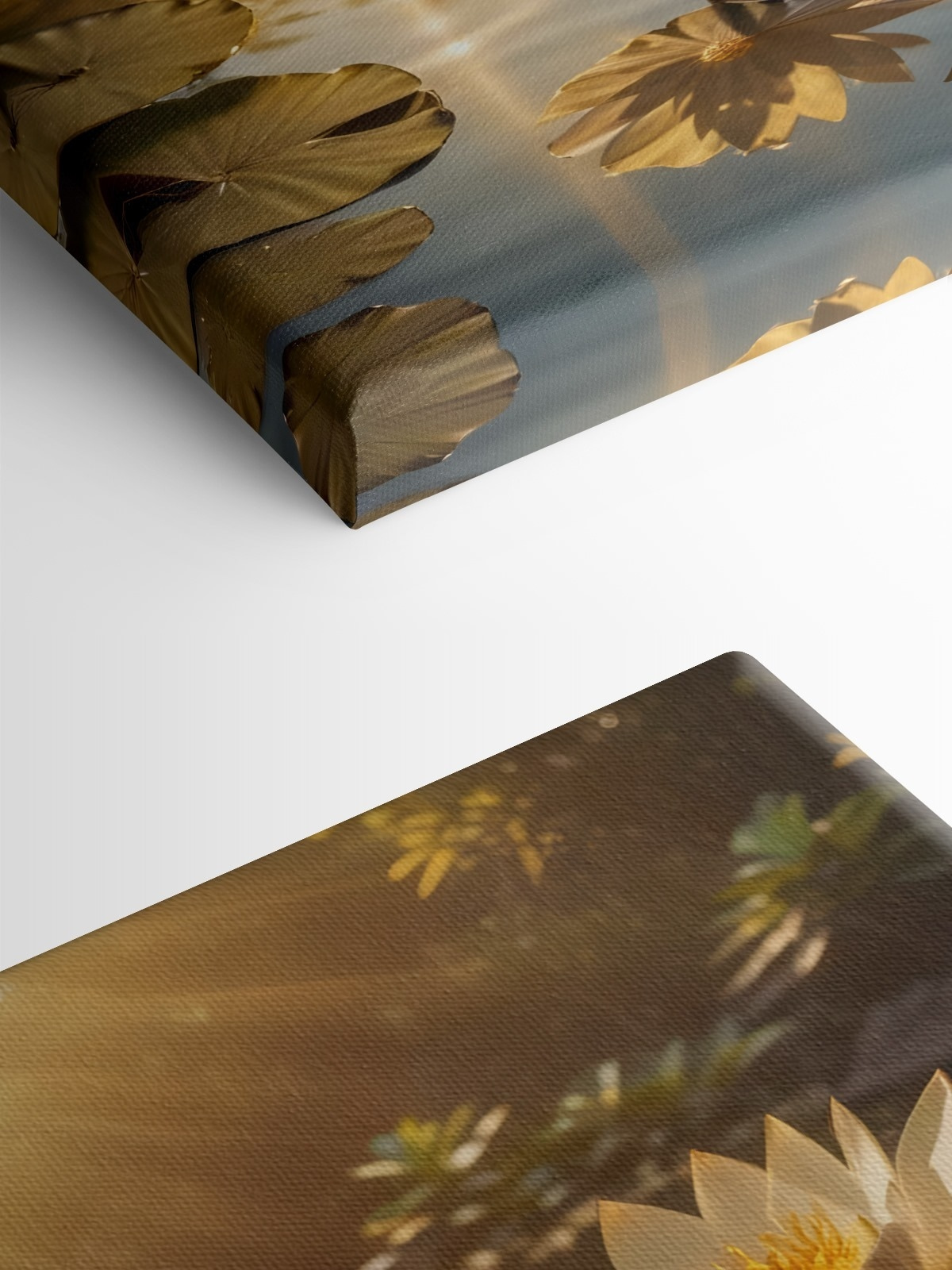 Stel je voor dat je langs een serene vijver wandelt, het zonlicht danst op het water en deze prachtige witte bloemen zitten er gewoon mooi bij. Deze canvasprint legt dat moment perfect vast – het is als een frisse wind voor je muren! De zachte kleuren en zachte reflecties voeren je mee naar een vredige ontsnapping. Of het nu je woonkamer siert of een rustig hoekje opfleurt, het voegt een vleugje elegantie uit de natuur toe. Perfect voor wie van schoonheid houdt zonder poespas. Denk maar aan: elke blik is een mini-uitstapje, zonnebrandcrème is niet nodig!
