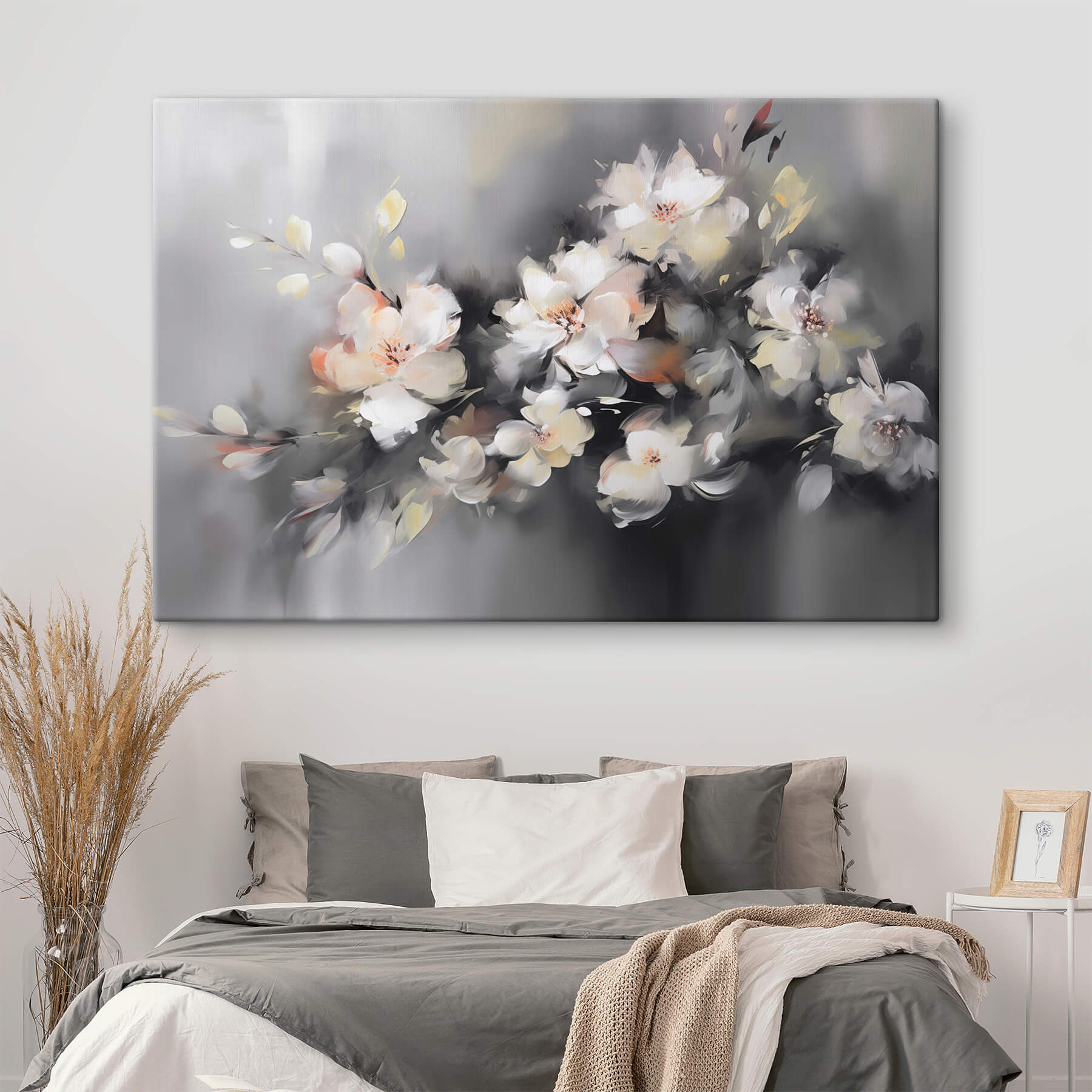 Voeg een vleugje charme toe aan je interieur met deze prachtige canvasprint met delicate bloemen op een strakke grijze achtergrond. Zie het al hangen boven een knusse bank en nodig de kamer uit met een heerlijk zacht gevoel. De zachte bloemblaadjes en warme kleuren creëren een serene sfeer – perfect om thee te drinken of in een goed boek te duiken. Het voelt als een frisse wind, nietwaar? Bovendien is het geweldig voor wie de schoonheid van de natuur binnenshuis wil halen zonder last te hebben van pollen! Dit kunstwerk zou je wel eens kunnen laten glimlachen elke keer als je er langs loopt – wie wist dat decoratie zo opbeurend kon zijn?